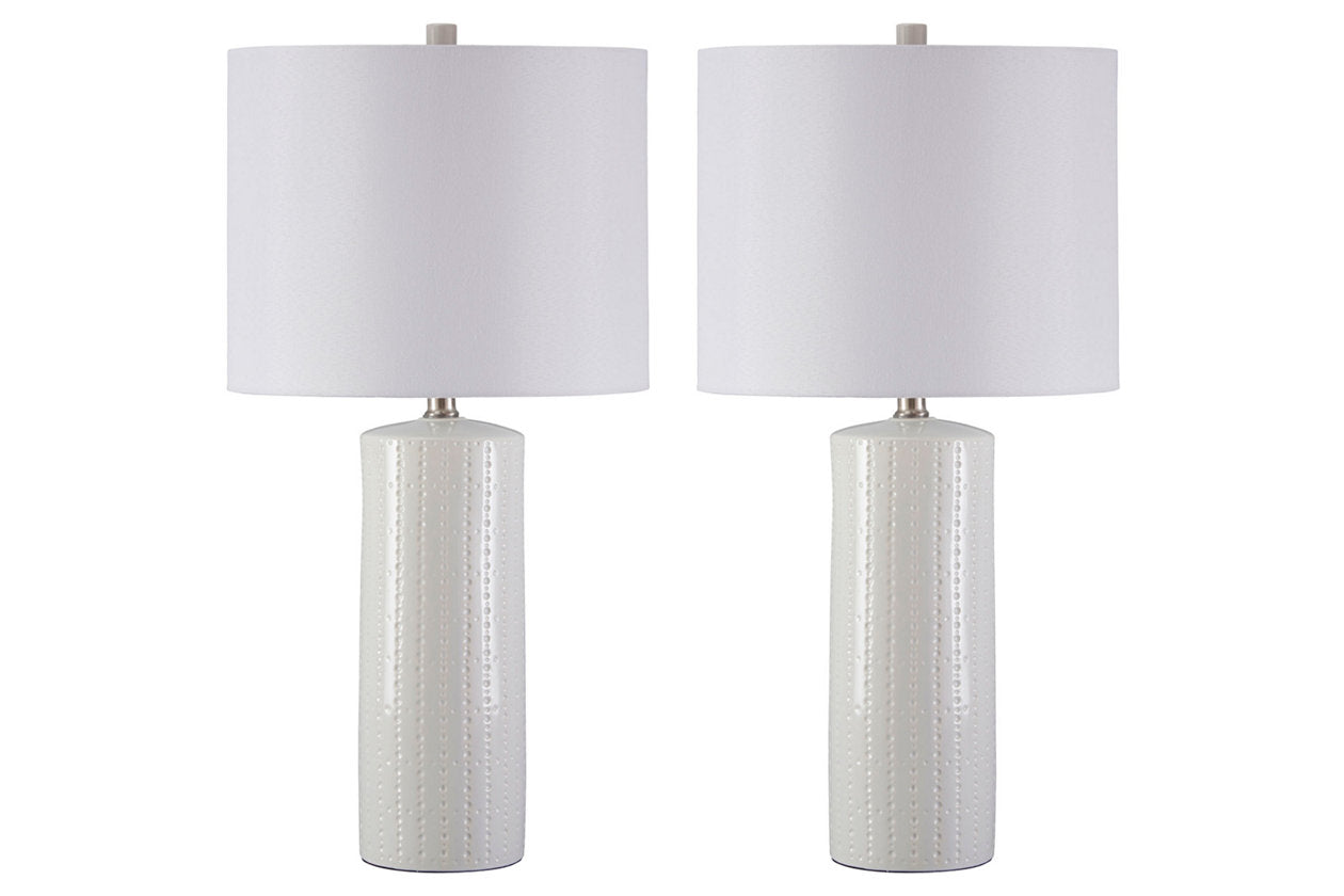 Its base teeming with texture, this ceramic table lamp proves that a monochromatic design can still be visually interesting. The clean lines and crisp finish are quintessential contemporary. — Luna Furniture introduces Steuben Table Lamp (Set of 2) to enhance the beauty of your living spaces.
