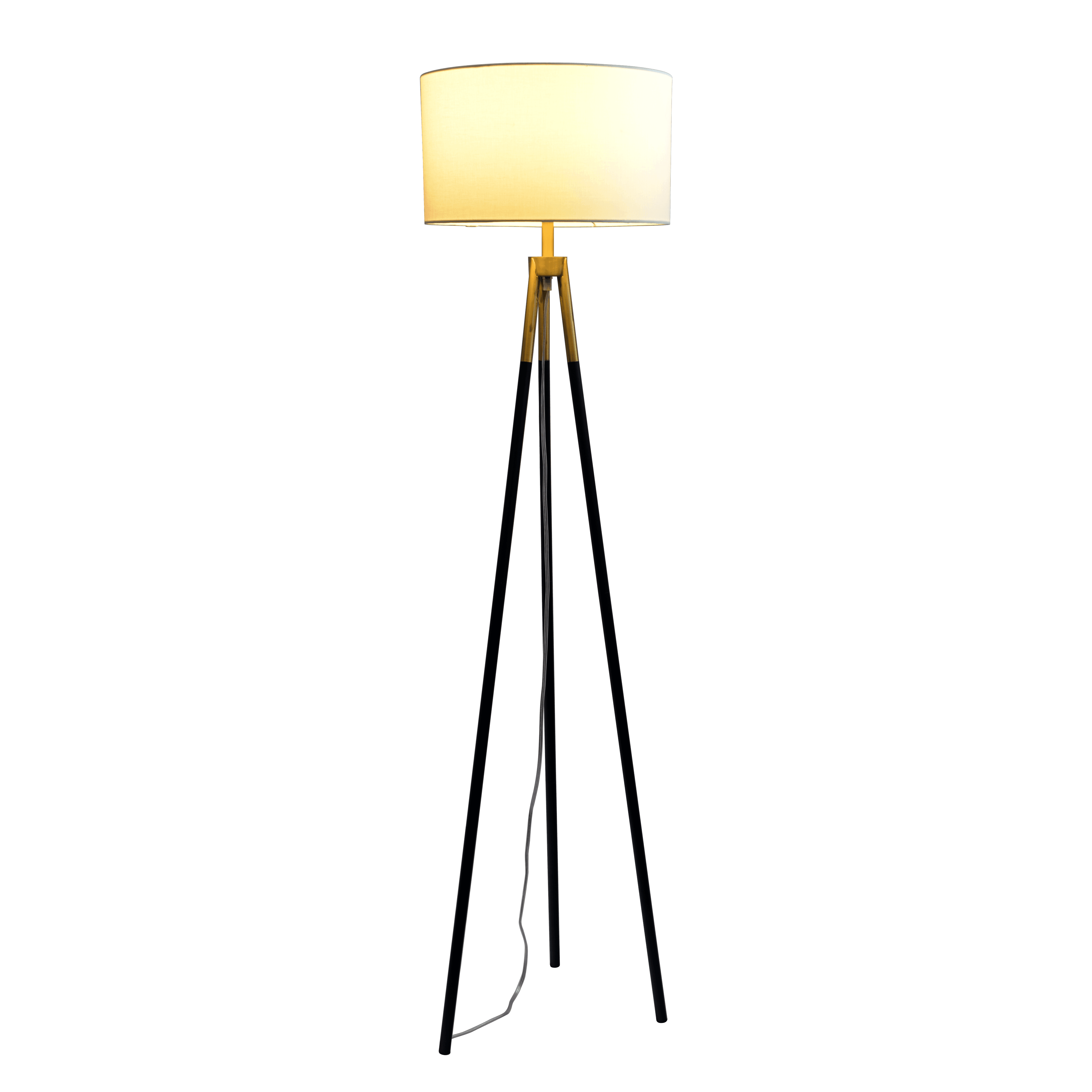 Sway Brassed Gold Floor Lamp with On/Off Switch Triple Legs White Fabric Shade