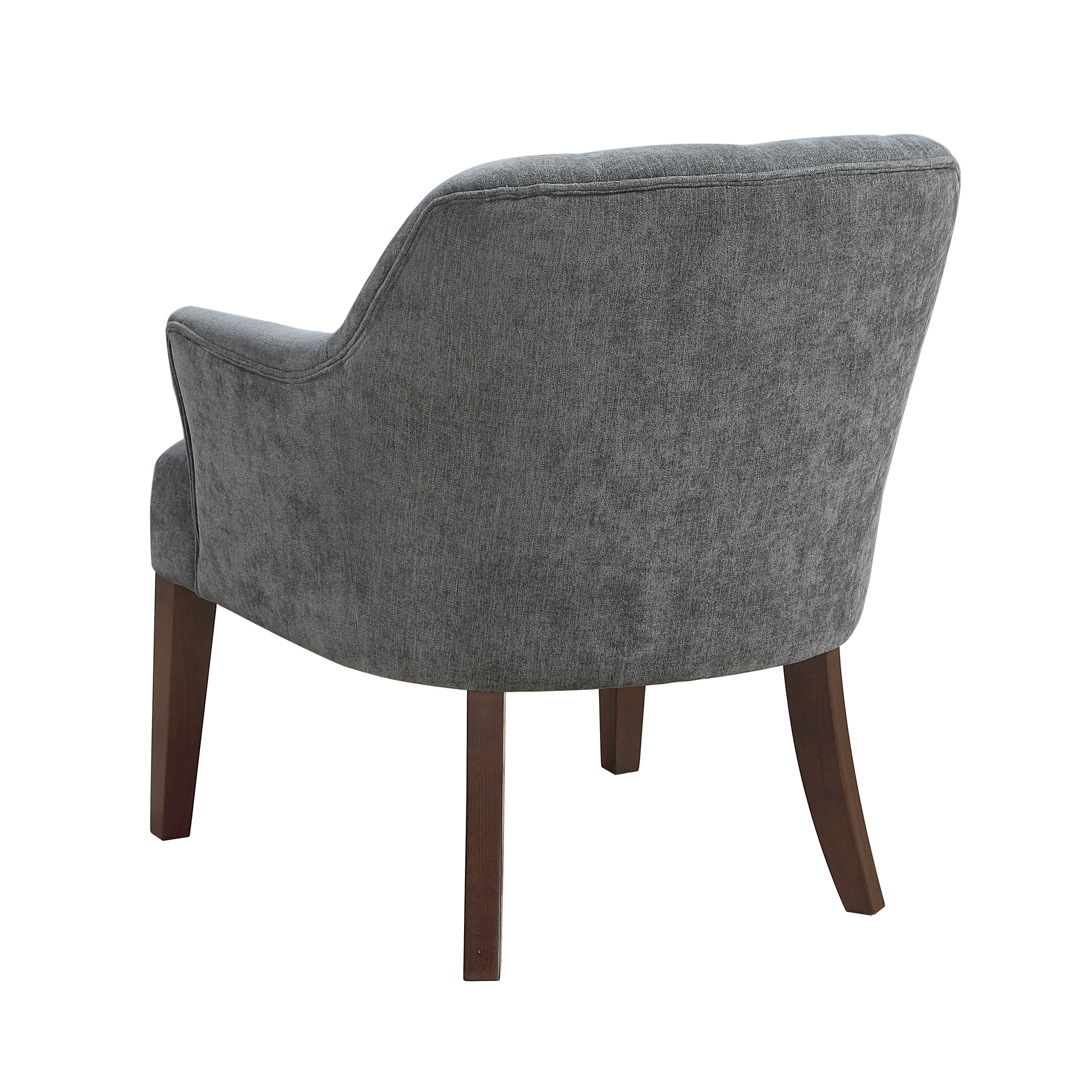 Add a touch of classic elegance and comfortable seating to your living space with this stylish charcoal fabric accent chair. Featuring a sturdy plywood frame and foam cushioned seat, this chair provides both durability and comfort. The textured fabric upholstery adds a sophisticated touch, while the button-tufted chair back creates a timeless look. The solid wood legs in an espresso finish provide a rich, contrasting foundation. With a 300lb weight capacity and easy assembly, this chair is perfect for enhancing your living room, bedroom, or reading nook with a blend of style and functionality.