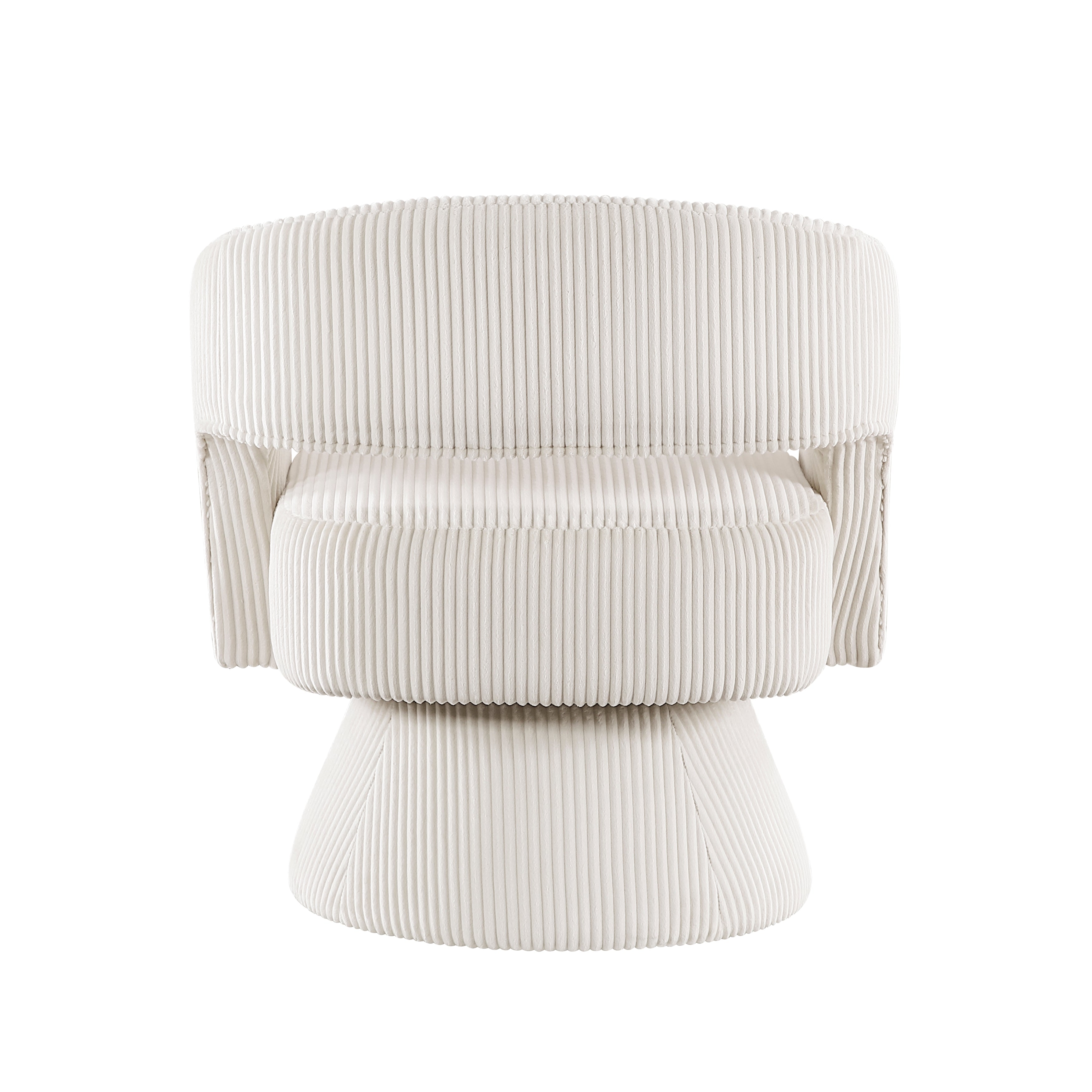 Elevate your home with this modern corduroy swivel accent chair, featuring a unique textured design and soft corduroy upholstery. Perfect for those seeking a blend of style and comfort, this chair’s eye-catching shape and luxurious fabric add a sophisticated touch to any space. The 360-degree swivel base allows for versatile movement, making it an ideal choice for living rooms, bedrooms, or stylish home offices. Its minimalist aesthetic and plush seating bring both functionality and elegance to contemporary interiors.