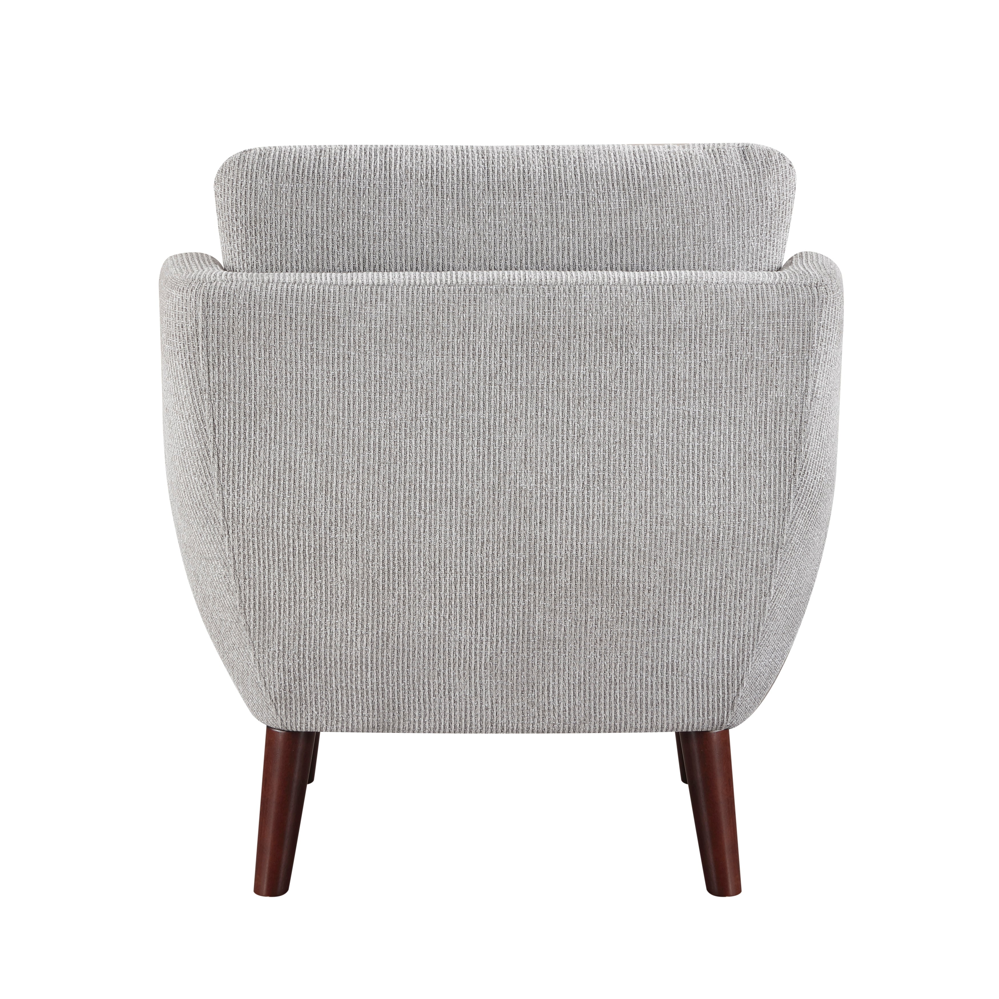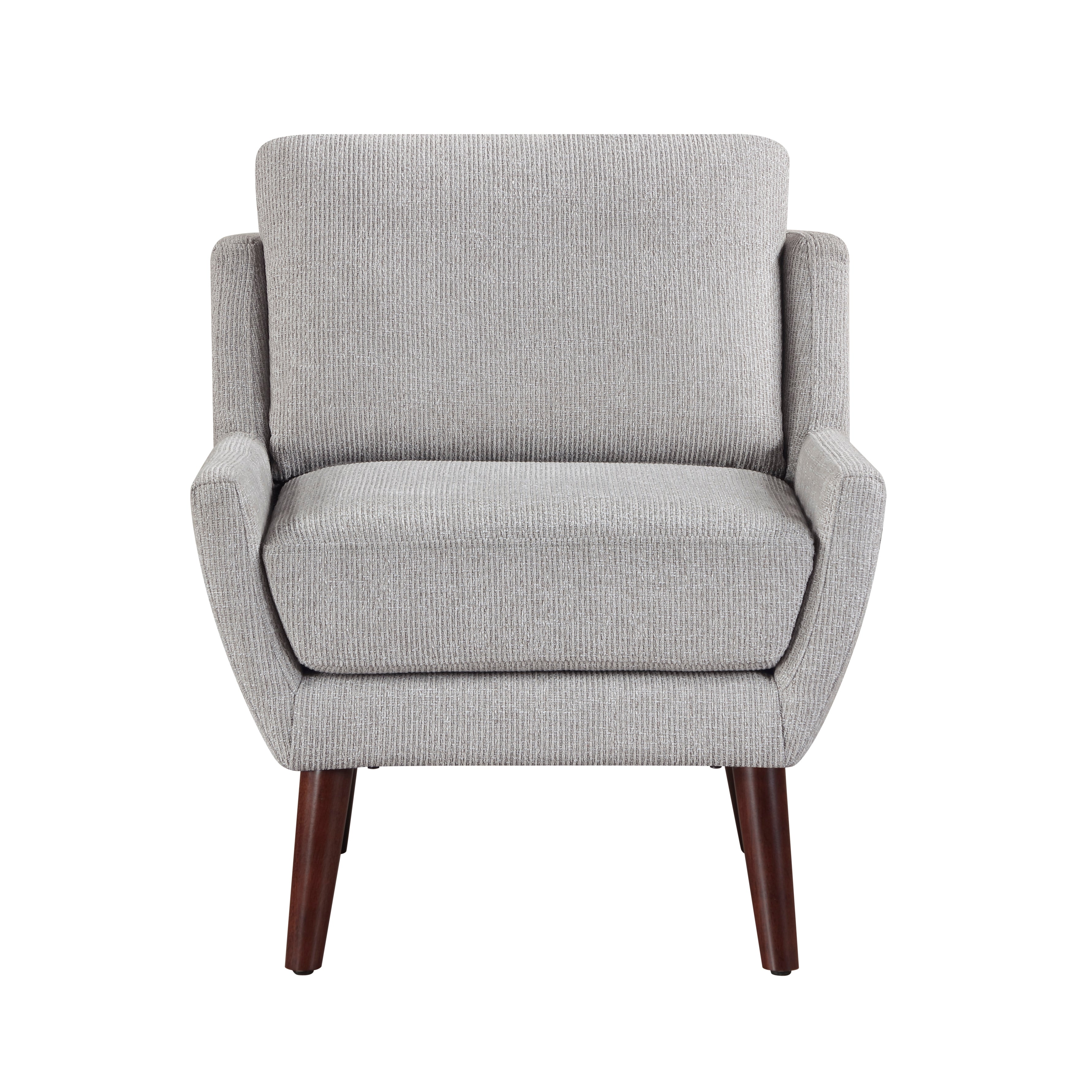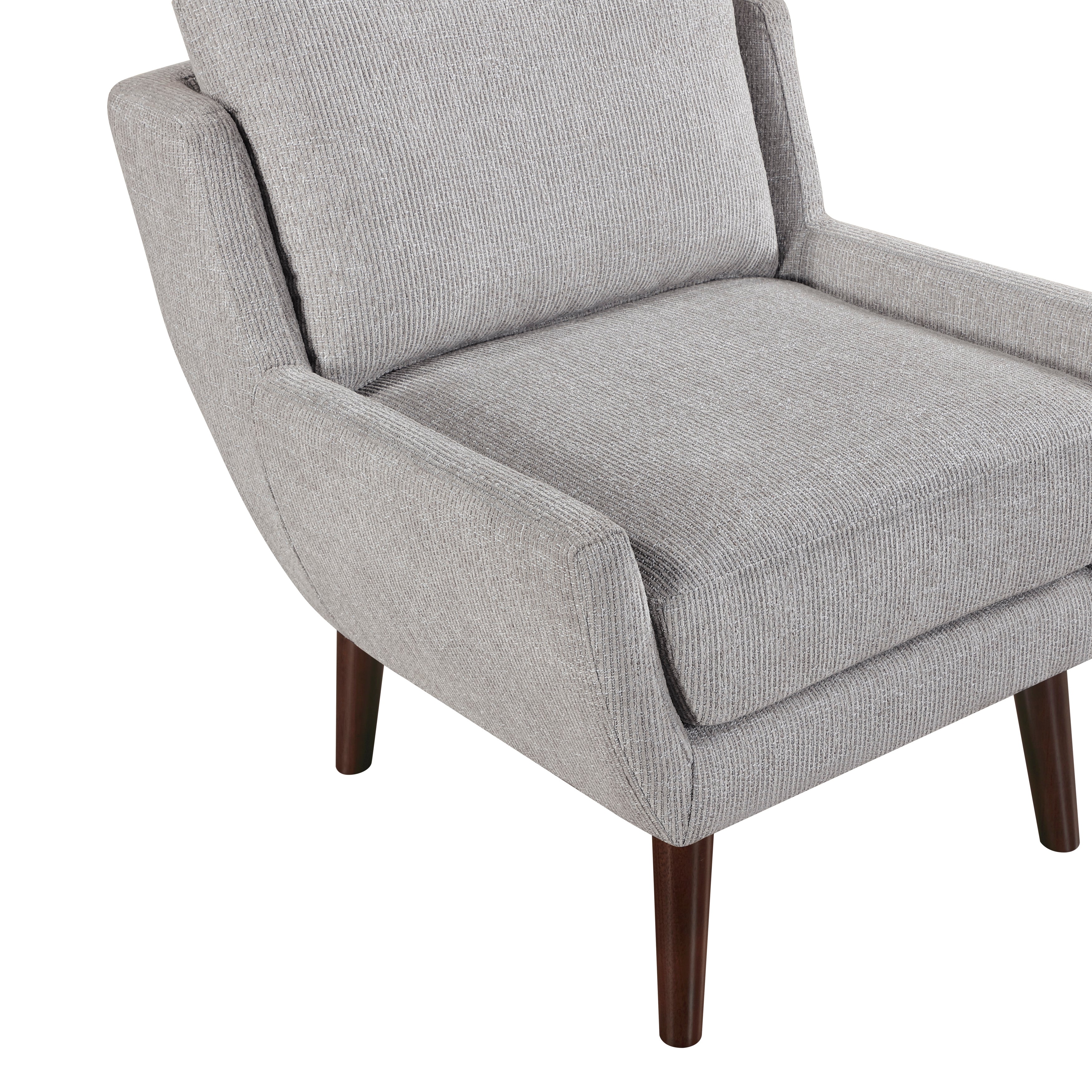 Add a touch of contemporary comfort and style to your living space with this mid-century modern accent chair. Featuring a sturdy plywood frame and luxurious chenille fabric upholstery, this chair is designed for both durability and comfort. The high-density foam padding over pocket coils provides exceptional support, while the reversible back and loose seat cushions offer versatility and extended use. Removable cushion covers make cleaning a breeze, and the solid wood legs in an espresso finish add a sophisticated touch. With a robust 300lbs weight capacity, this chair is perfect for any room, offering a stylish and comfortable seating solution. Assembly is required, but the transformation of your space into a cozy retreat is well worth it.