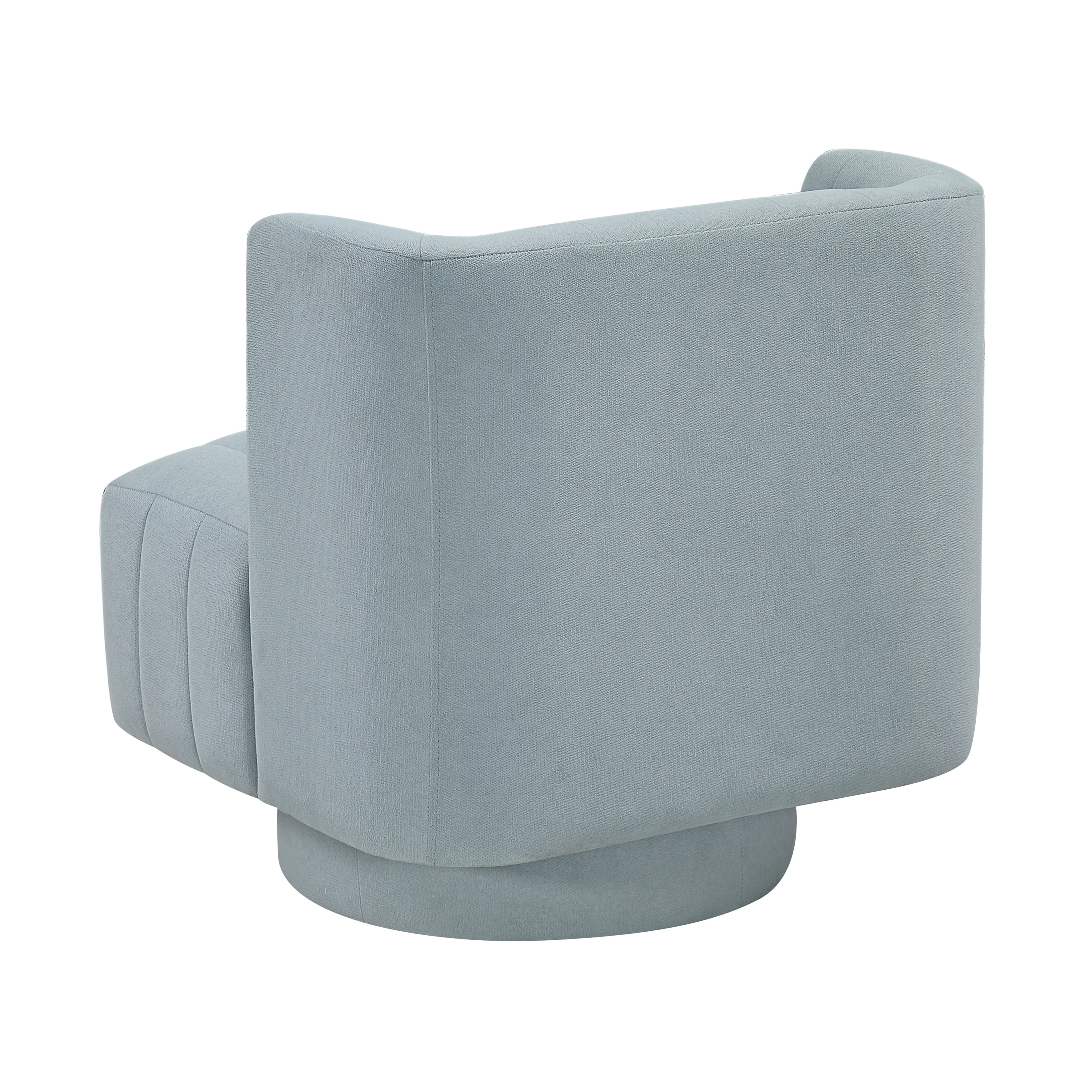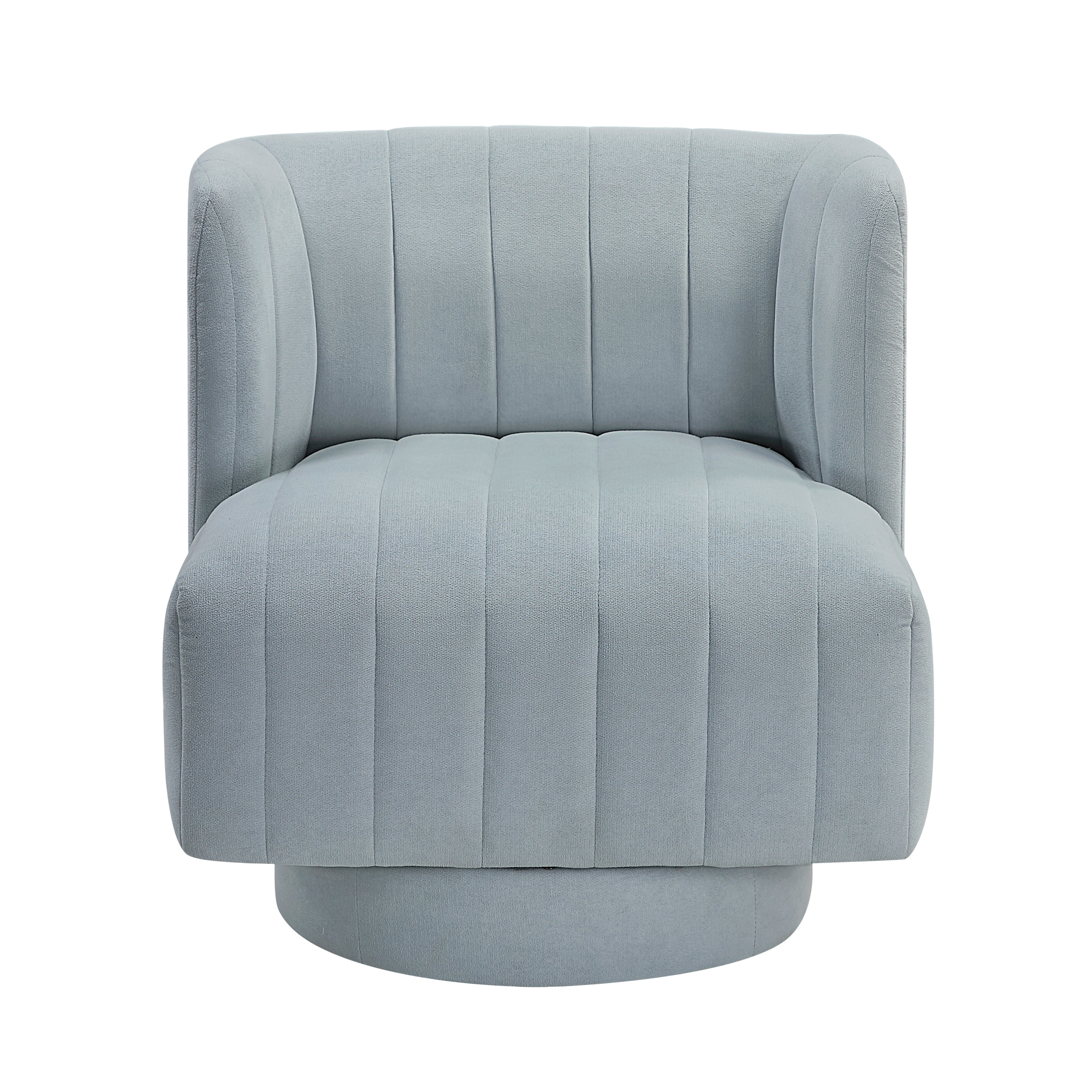 This chic modern swivel chair, upholstered in a luxurious textured fabric with stylish channel tufted details, offers a perfect blend of comfort, functionality, and contemporary design for your living space. Its unique barrel back design and attached seat cushion provide inviting comfort, while the robust plywood frame and metal swivel base ensure stability and smooth 360-degree rotation. Ideal as an accent chair or a functional seating option, this piece adds a touch of modern elegance and versatility to any room. Assembly is required to bring this delightful and dynamic chair into your home.