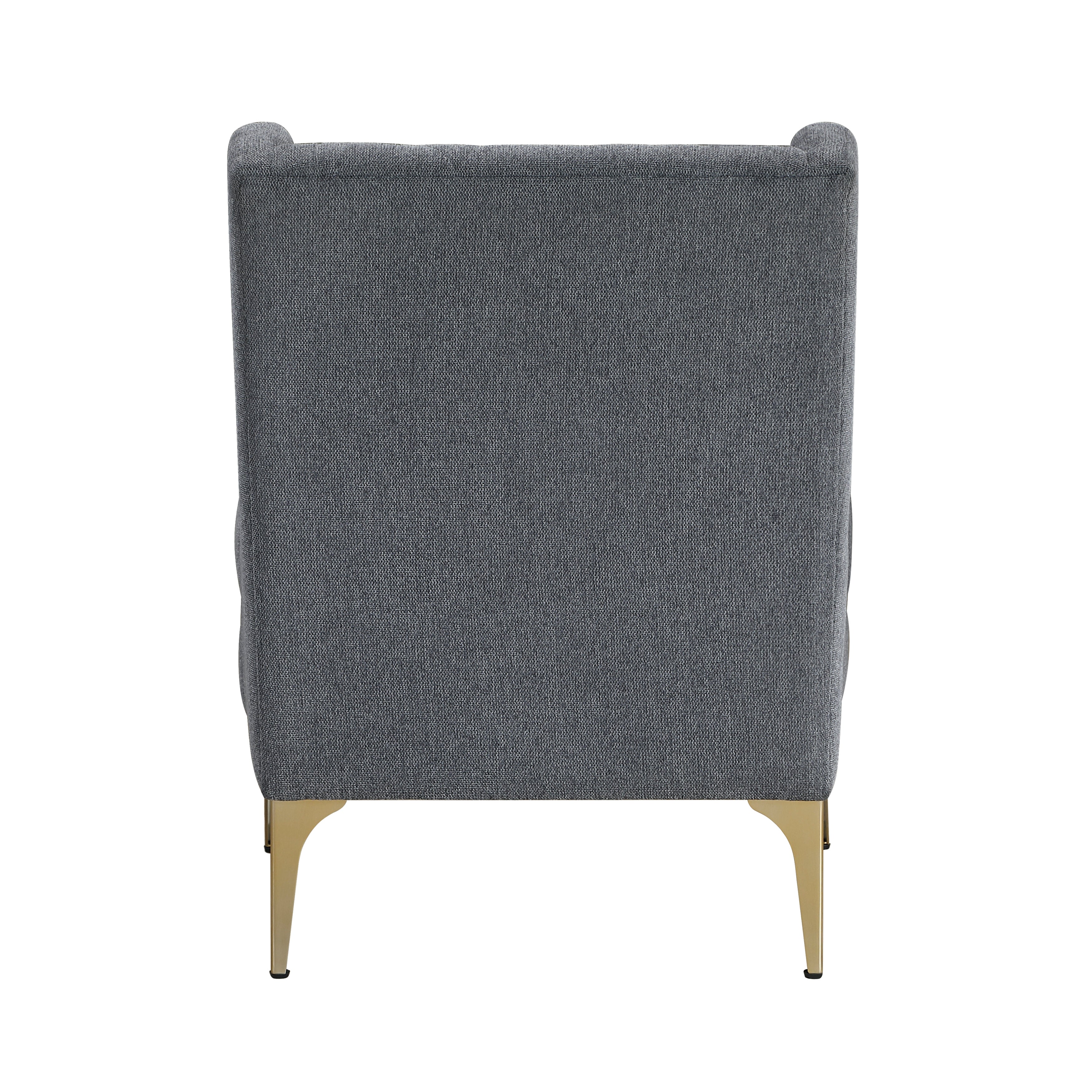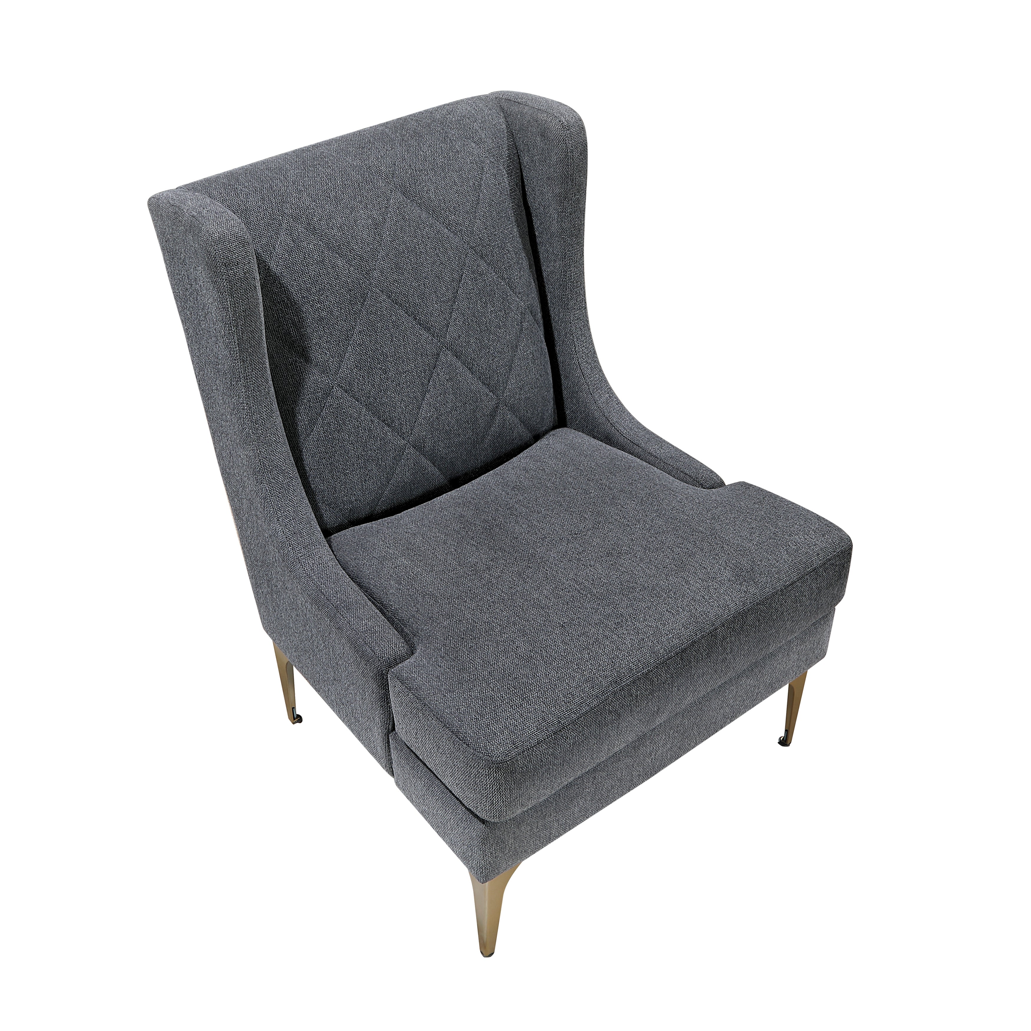 Add a touch of contemporary elegance and exceptional comfort to your living space with this blue chenille accent chair. Featuring a sturdy plywood frame, foam padding over pocket coils, and soft chenille fabric upholstery, this chair offers both durability and a luxurious seating experience. The diamond-stitched chair back adds a touch of modern sophistication, while the reversible seat cushion and removable cover make maintenance a breeze. The brushed gold finish metal legs provide a stylish foundation. With a 300lb weight capacity and easy assembly, this armchair is perfect for enhancing your living room, bedroom, or reading nook with a blend of style and practicality.