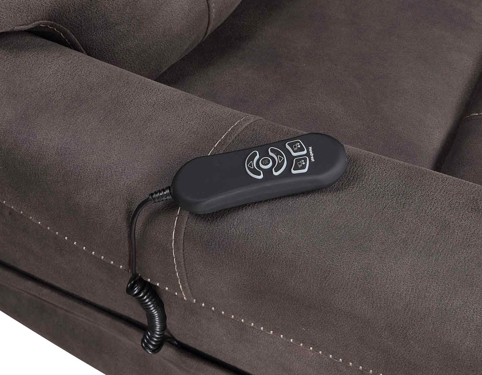 The Brisbane Power Lift Chair combines style and function in this functional silhouette that features three heat zones. An envelope arm and baseball stitching offers a sharp contrast for the neutral stone cover that will blend with virtually any decor. One-touch lift/recline function makes for easy entry and exit from the recliner and a convenient all close button returns the unit to its original position.