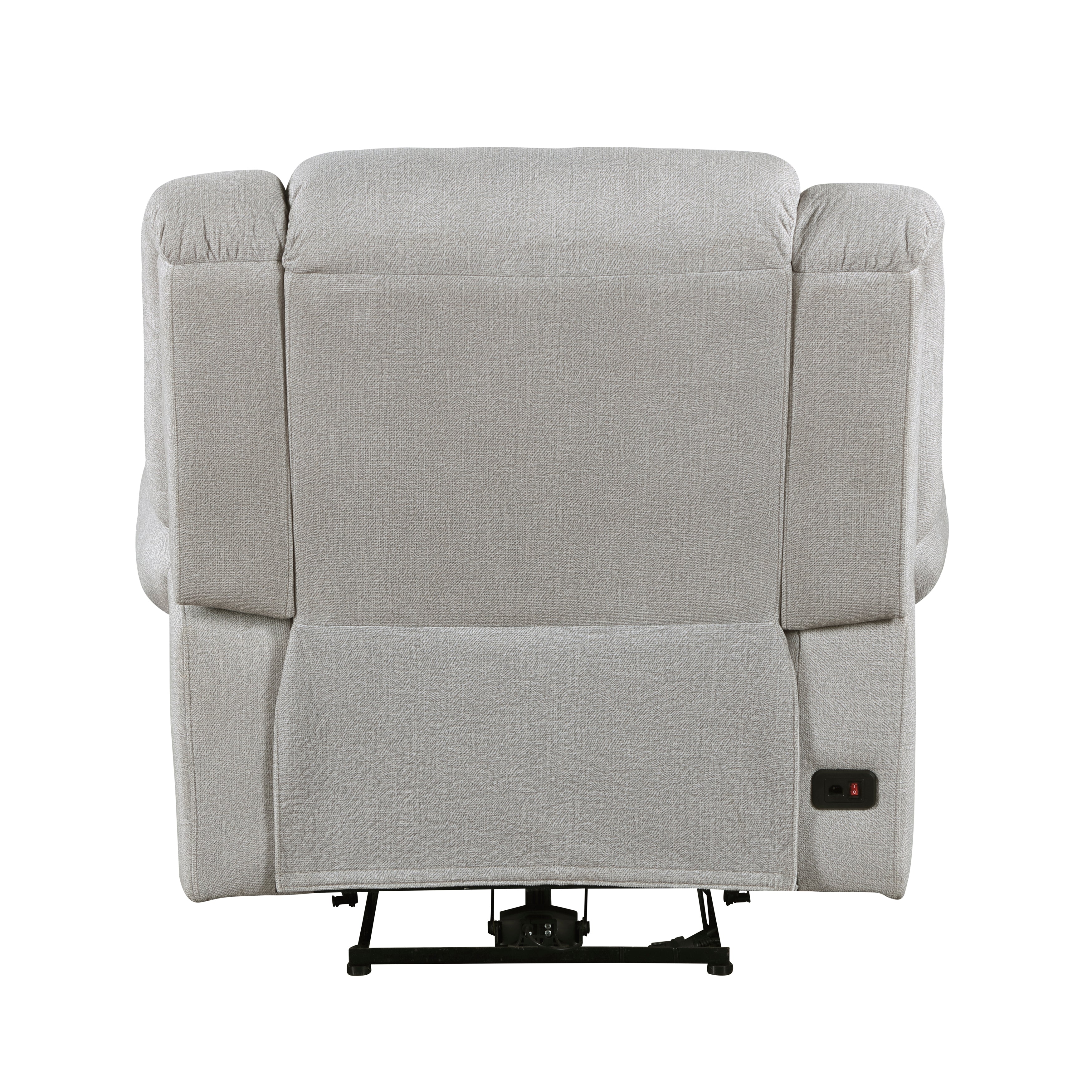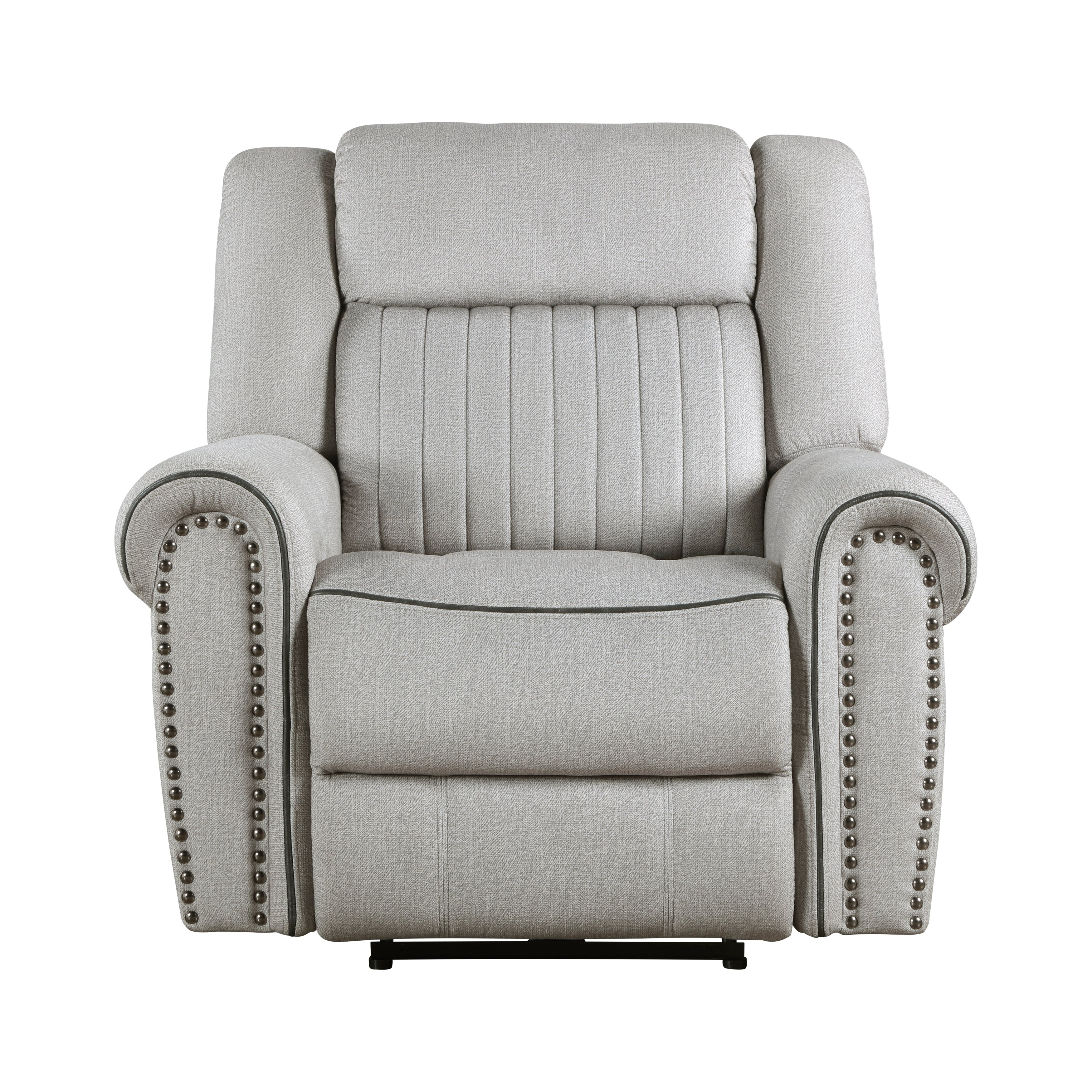 Styled for the transitional home, the Brennen Collection’s comfortable presence will be a perfect match for your casual living room. The sofa, love seat, and chair of the collection feature power reclining mechanisms allowing for ease of motion when going from seated to reclined. Additional functionality comes in the form of the console’s love seat, its lift-top hidden compartment and cupholders providing a convenient spot for beverage and accessory storage. Plush contoured seating is defined by the contoured stitching, while the arms of the collection are accented with nail head trim. Mist-hued textured microfiber covers the seating group, providing soft touch and decorative versatility.
