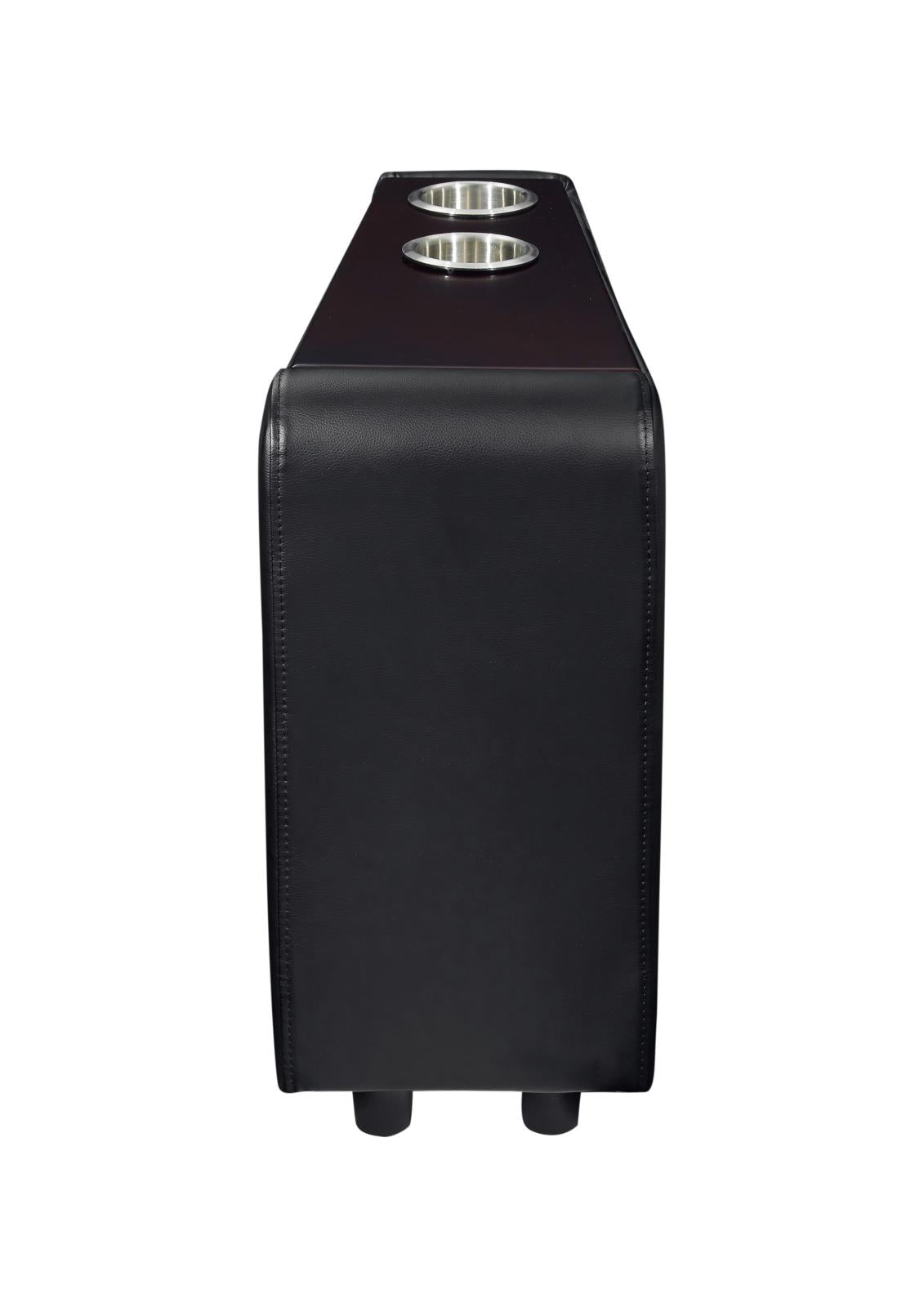 Modern home theater seats are bound to bring the movie experience to your home. Choose your custom configuration of black home theater seats, upholstered in leatherette. Slim track armrests give the chairs stylish appeal along with tufted backrests. Consider the optional consoles to go between each seat and serve as a cup holder. Choose this home theater recliner set to elevate your next home theater adventure.