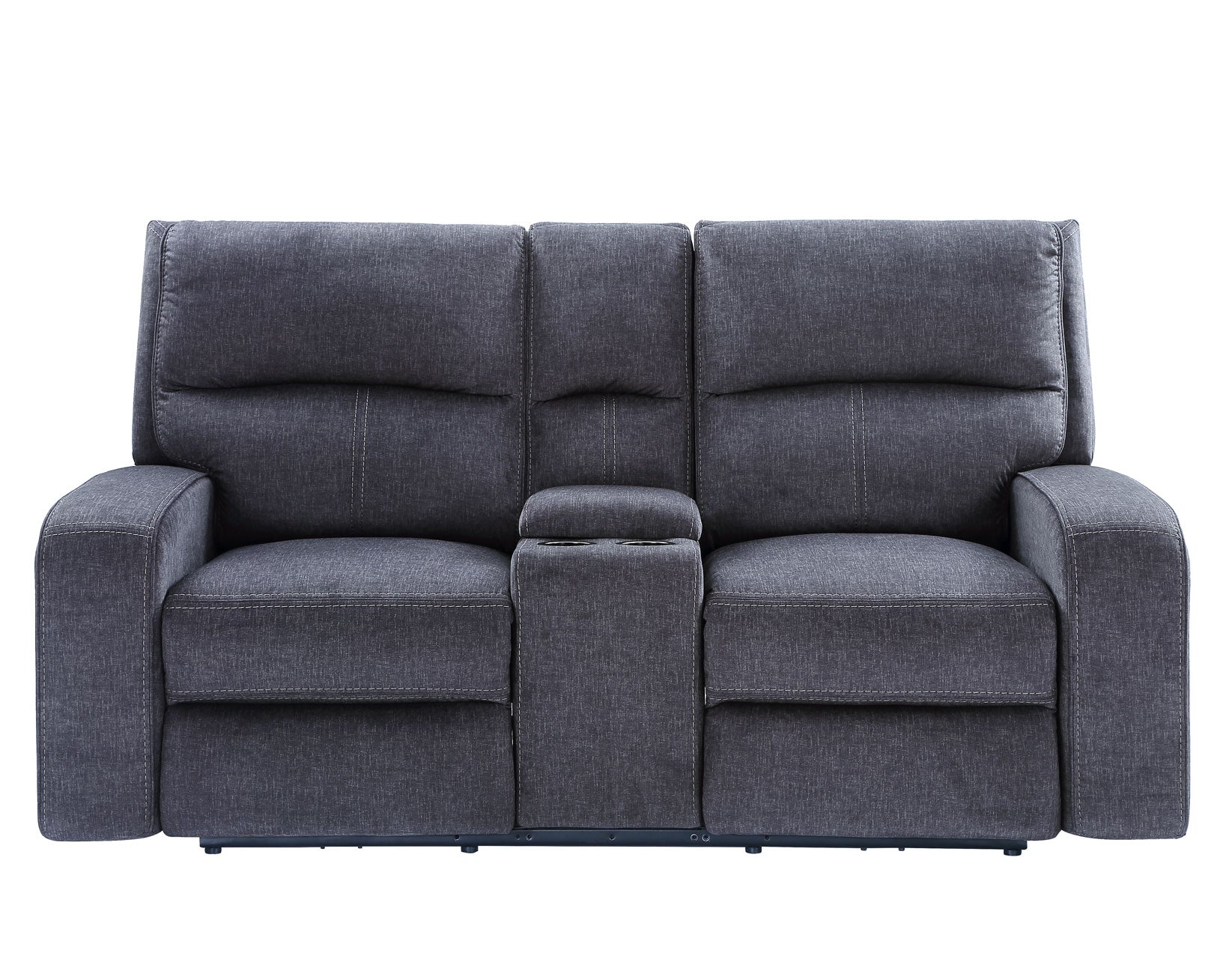 A power reclining set, Lovell offers incredible comfort is a classically styled motion group. Power footrest operate at the touch of a button while the intricate stitching  covers all the details.