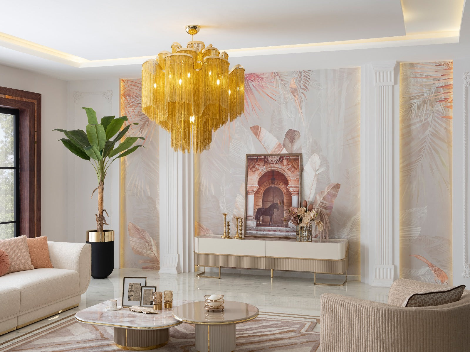 The Orsino TV Stand is a statement piece that seamlessly blends luxury and functionality into your living space. Designed with smooth, rounded edges and refined textures, it offers a sophisticated touch that complements modern and elegant interiors. Its neutral tones and gold-accented details create a sense of opulence, making it the perfect centerpiece for your entertainment area.