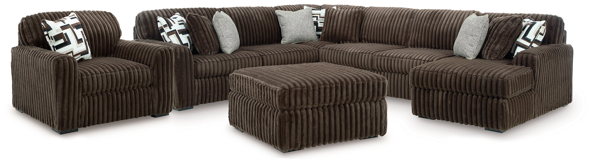 Midnight-Madness Dark Brown 4-Piece Sectional with Chaise, Oversized Chair and Ottoman