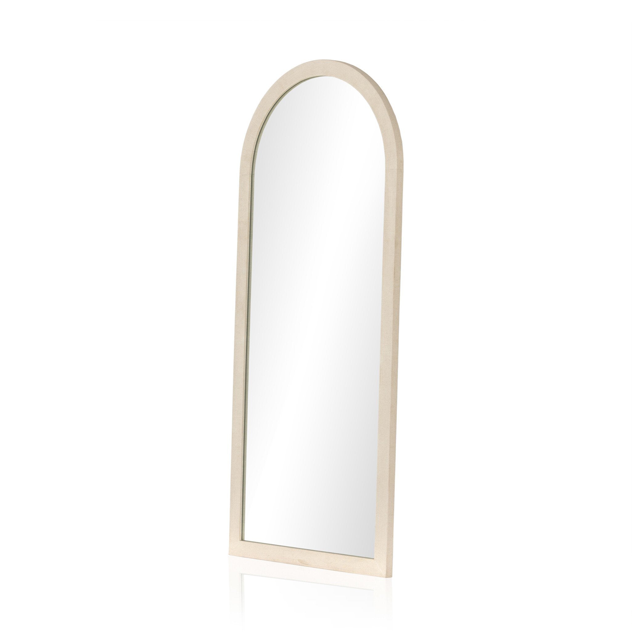 - Clean and simple floor mirror, a soft arch design with texture offered by an ivory painted linen-wrapped frame draws your attention. Find a balance between softness and crisp geometric shapes for subtle yet impactful contrast.