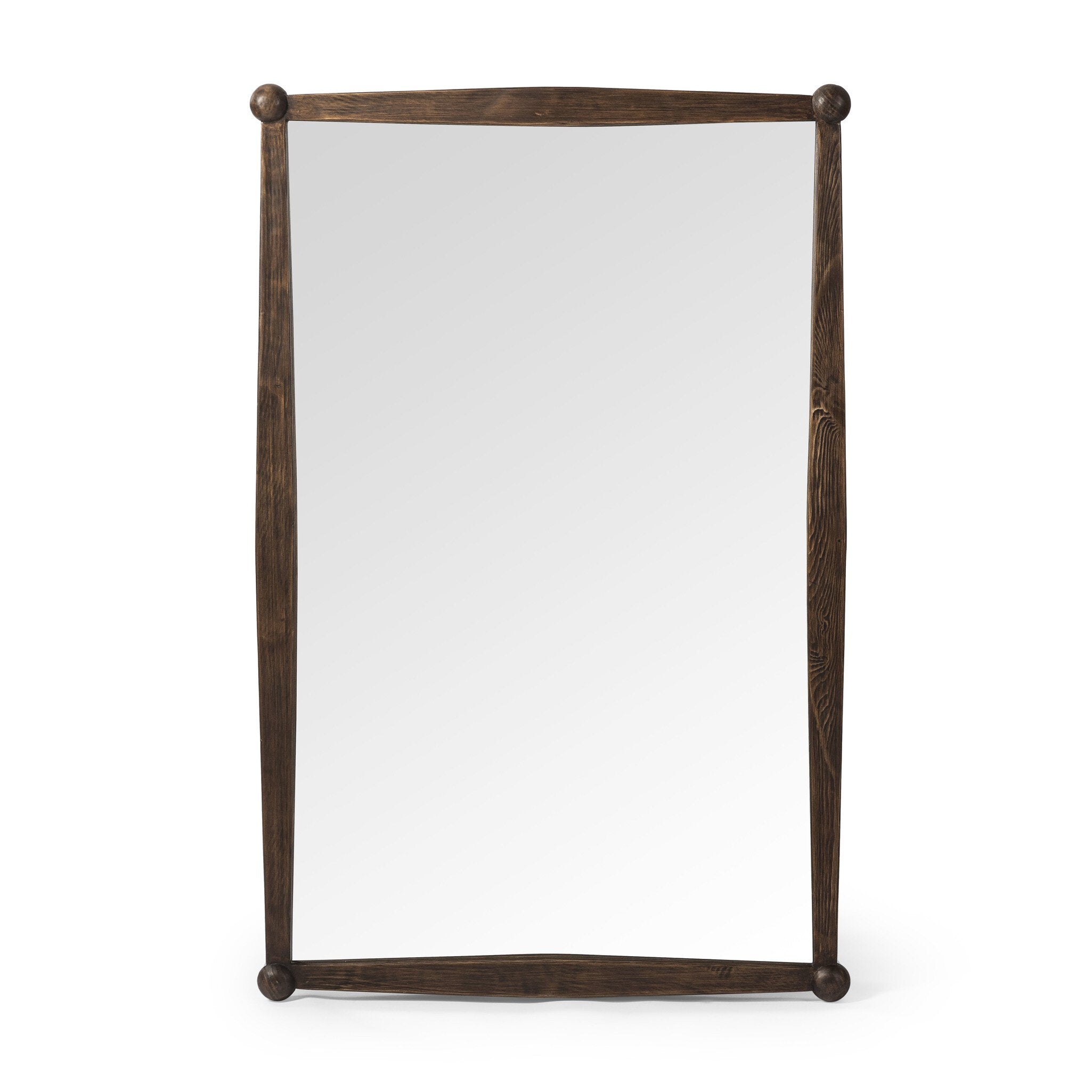 - A tapered frame, solid pine wall mirror with antique ball details on the corners, for a playful take on the traditional. Dual hanging orientation for an adaptable design. A design collaboration by Amber Lewis and Four Hands. This item has limited online distribution and may not be sold on websites without prior approval. Visit the FAQ page in our Help Center for more details.