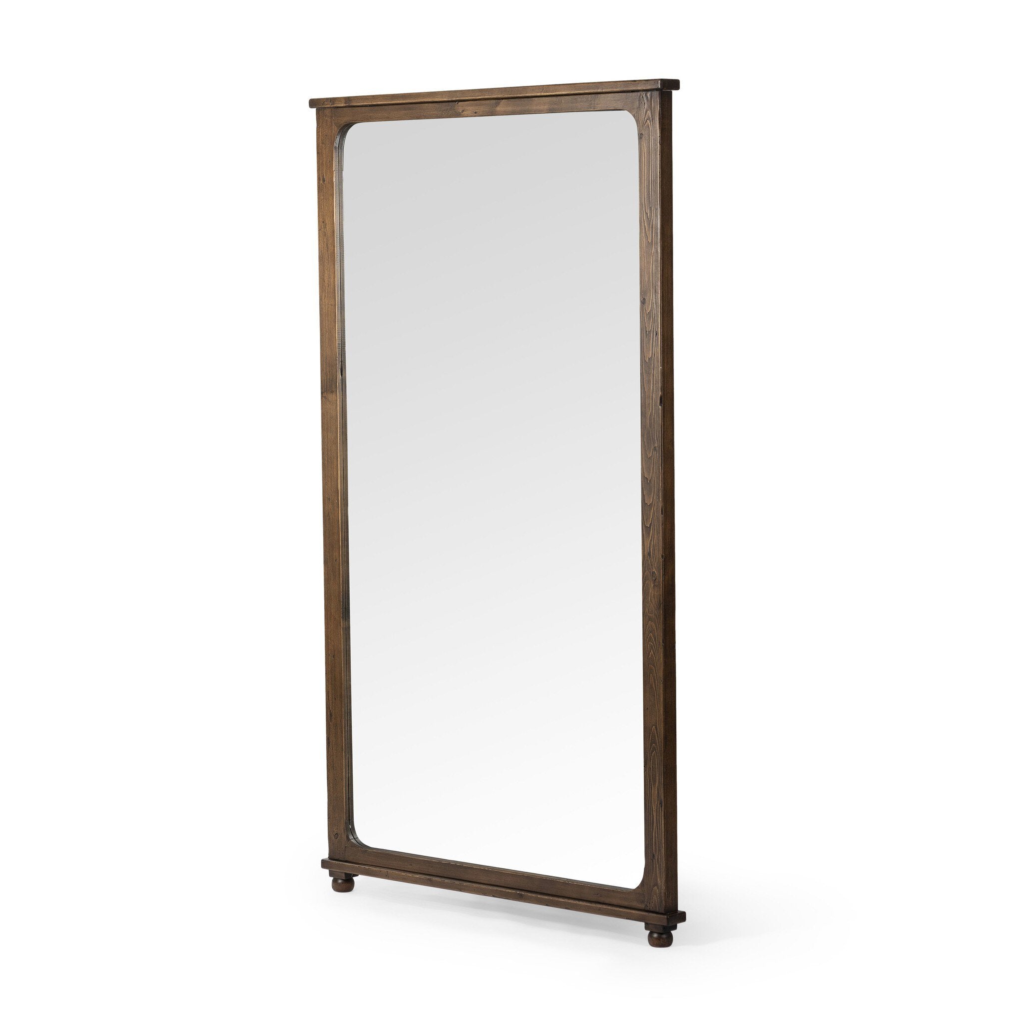 - Deep, aged pine frames this large-scale floor mirror, softening the look with slightly curved interior corners. A simplistic moulding overhang detail along the top and bottom offers visual structure, finished with petite bun foot details. A design collaboration by Amber Lewis and Four Hands. This item has limited online distribution and may not be sold on websites without prior approval. Visit the FAQ page in our Help Center for more details.