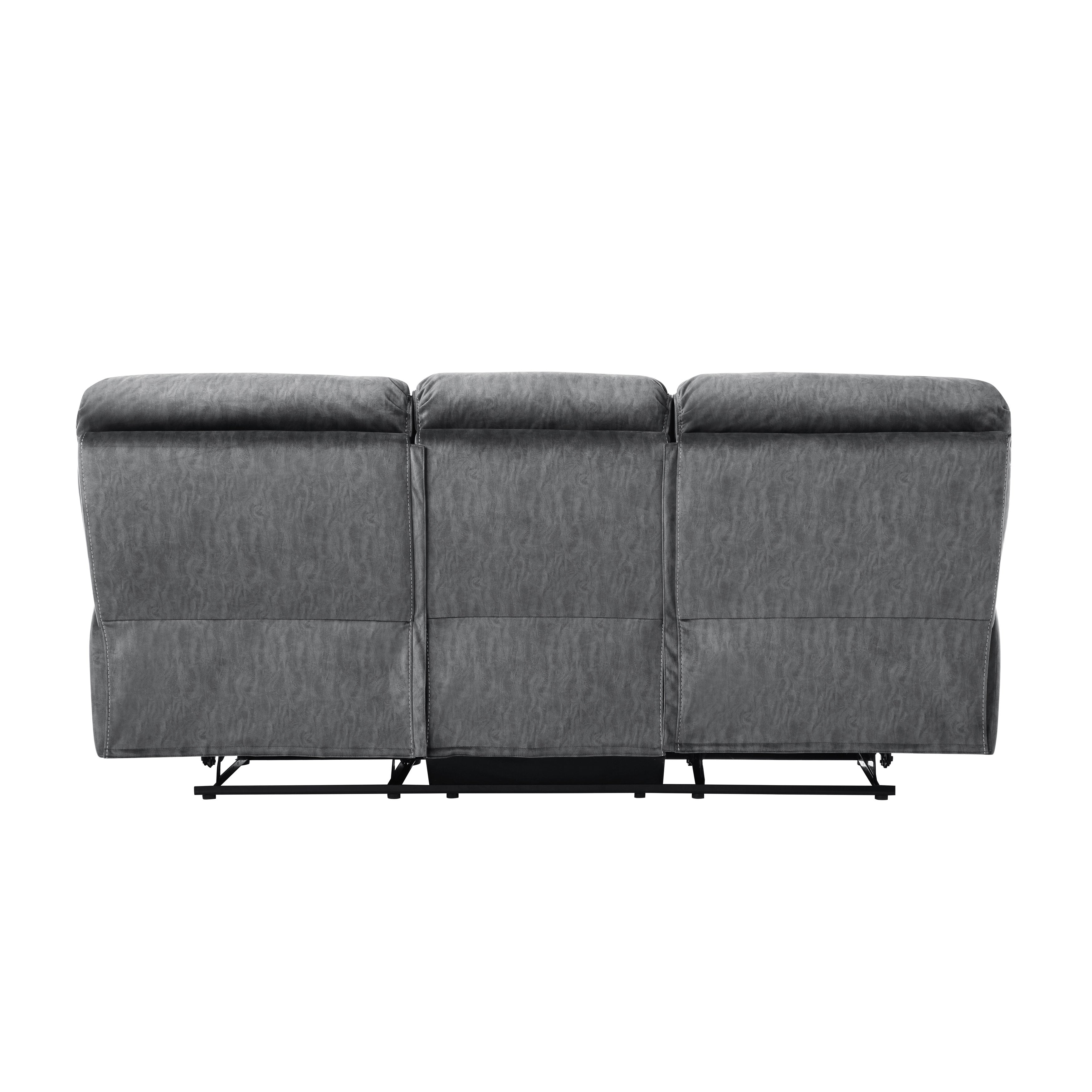 With a versatile style that is perfect for your casual living room, the Muirfield Collection’s plush seating and modern aesthetic create a platform for your relaxation. The plush pillow-top arms and seating of the sofa are covered in gray textured microfiber upholstery for neutral accent to your home’s decor. The manual reclining mechanism operates with the pull of a side-mounted tab, that once engaged, take you from seated to reclined in an easy motion.