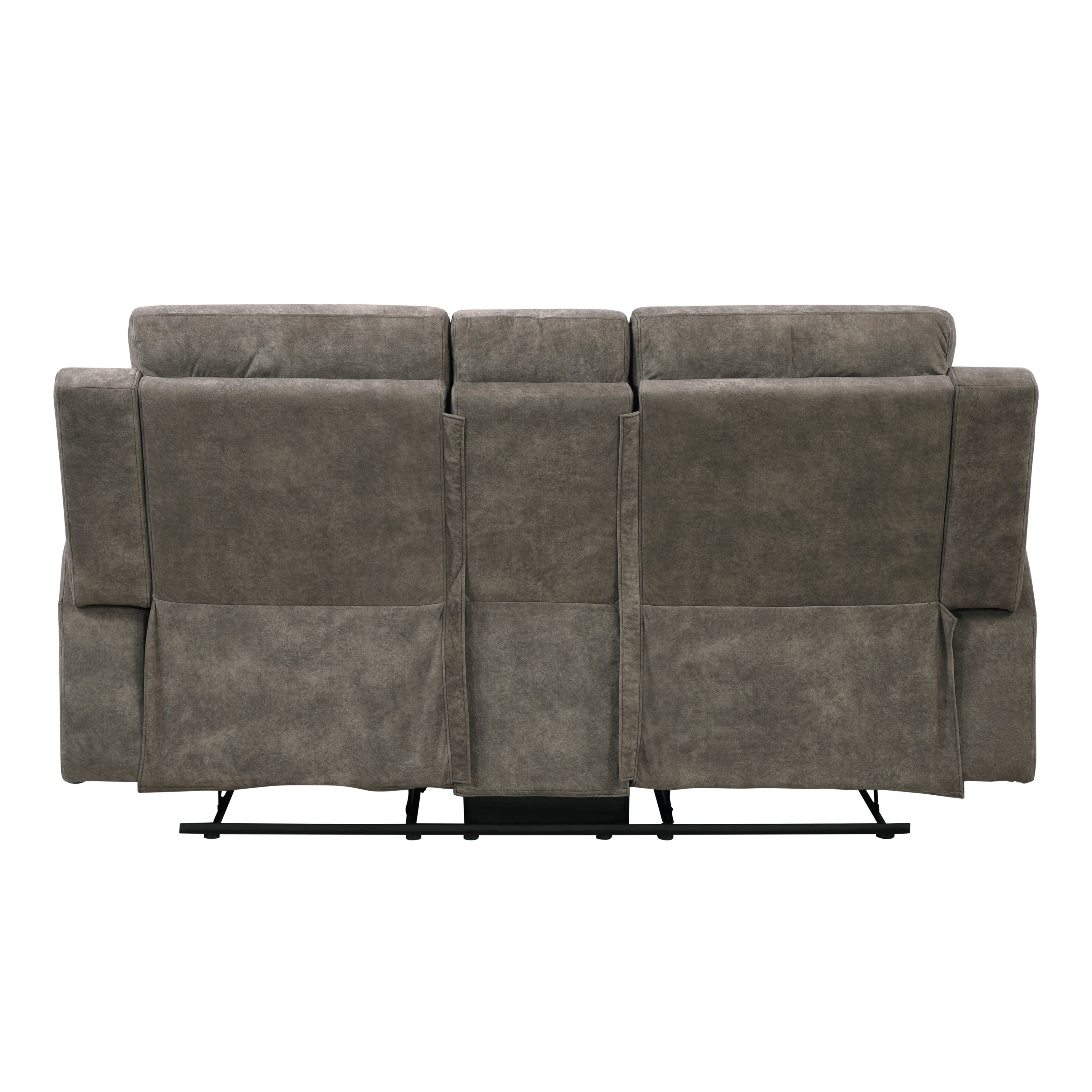 Experience ultimate shared relaxation with our contemporary luxurious double reclining loveseat, complete with a convenient center console. Upholstered in a soft and durable textured microfiber, this loveseat features plush foam padding over individual pocket coils, providing exceptional comfort and support for two. Each seat reclines independently with an easy-to-use tab pull mechanism, allowing both occupants to find their perfect lounging position. The thoughtful center console offers practical storage and includes two built-in cup holders, keeping essentials within easy reach. Built with a sturdy solid wood and plywood frame and metal-reinforced seats, this reclining loveseat is designed for lasting durability, supporting up to 300lbs per seat for years of shared comfort and enjoyment.