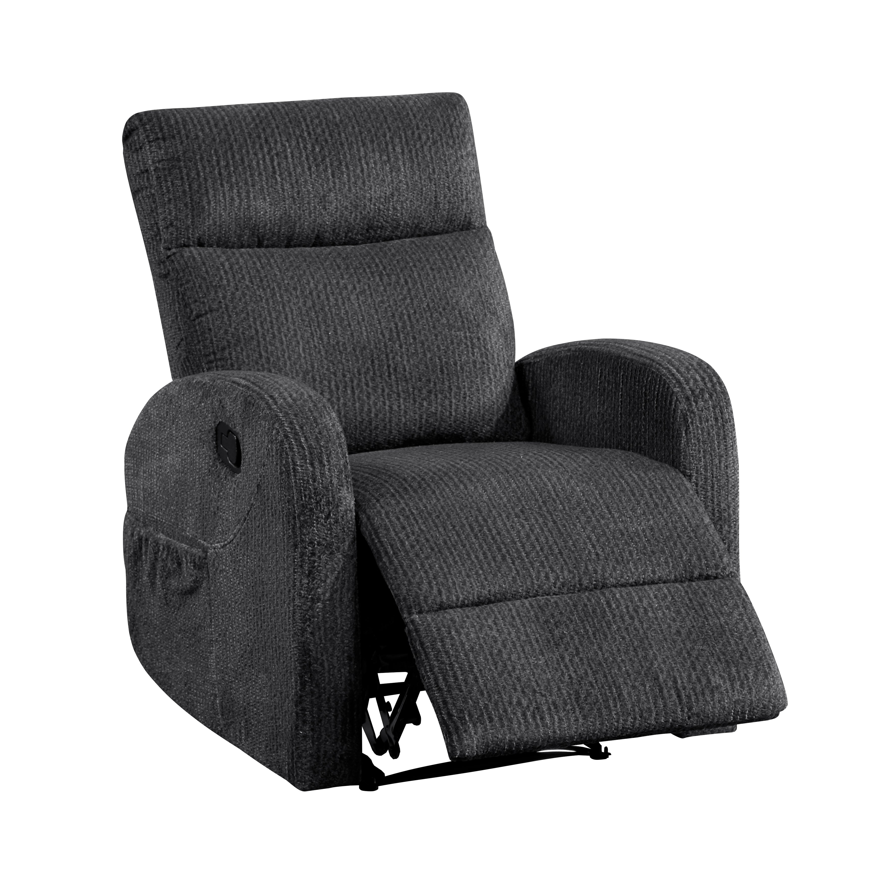 Maximize your comfort and your floor space with this sleek and functional wall-hugger recliner. Built on a durable plywood frame with a metal-reinforced seat, this chair is designed for sturdy and long-lasting support with a weight capacity of 300lbs. The plush foam padding over pocket coils and soft textured microfiber upholstery provide a comfortable and inviting seating experience. Designed with a convenient tab pull reclining motion and a wall-hugger feature, this recliner requires only 2 inches of clearance from a wall to fully recline, making it perfect for small living spaces. An integrated side pocket provides a handy spot for magazines or remote controls, combining modern convenience with classic comfort in a streamlined design.