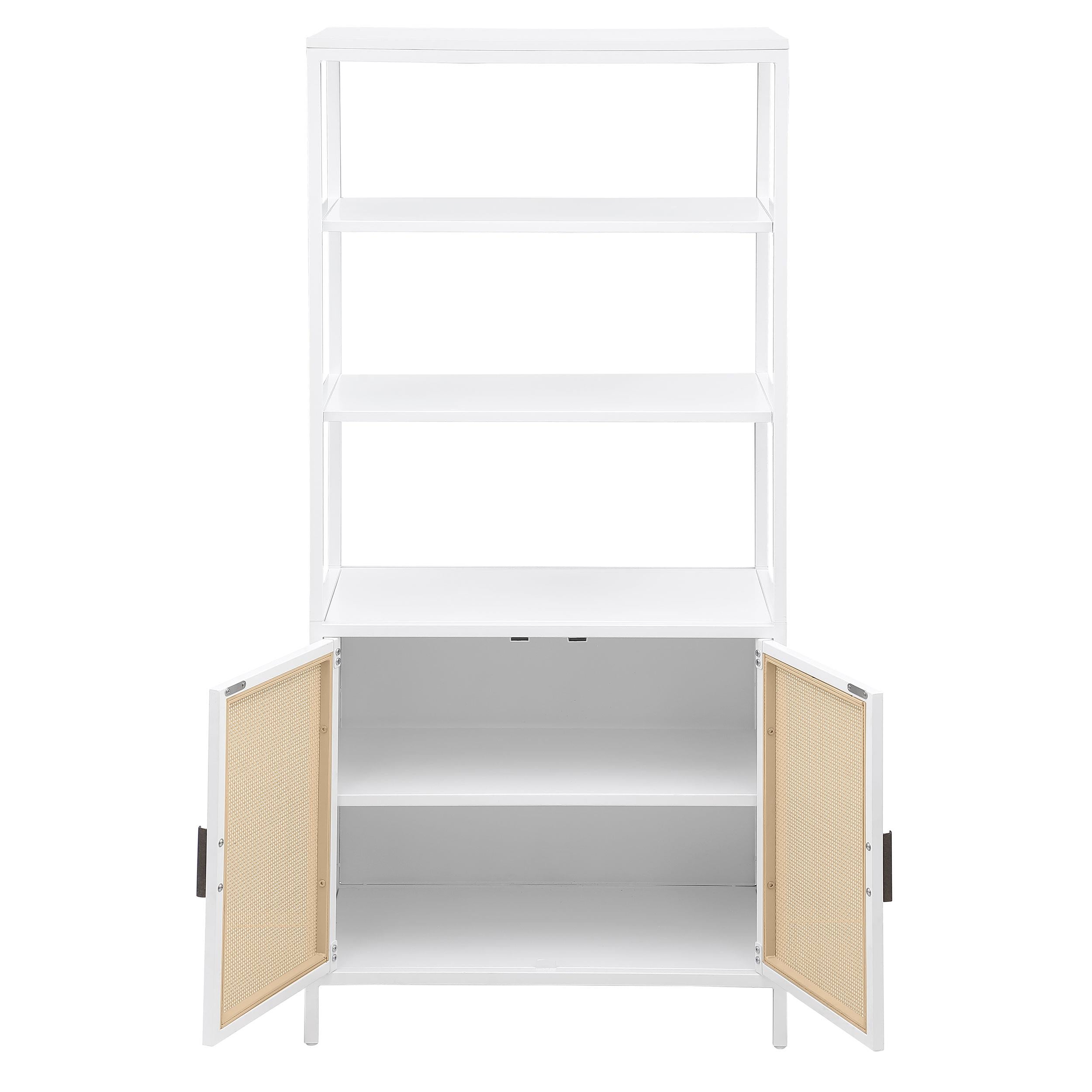 Amherst White 3-Shelf Radio Weave Cane Metal Accent Cabinet