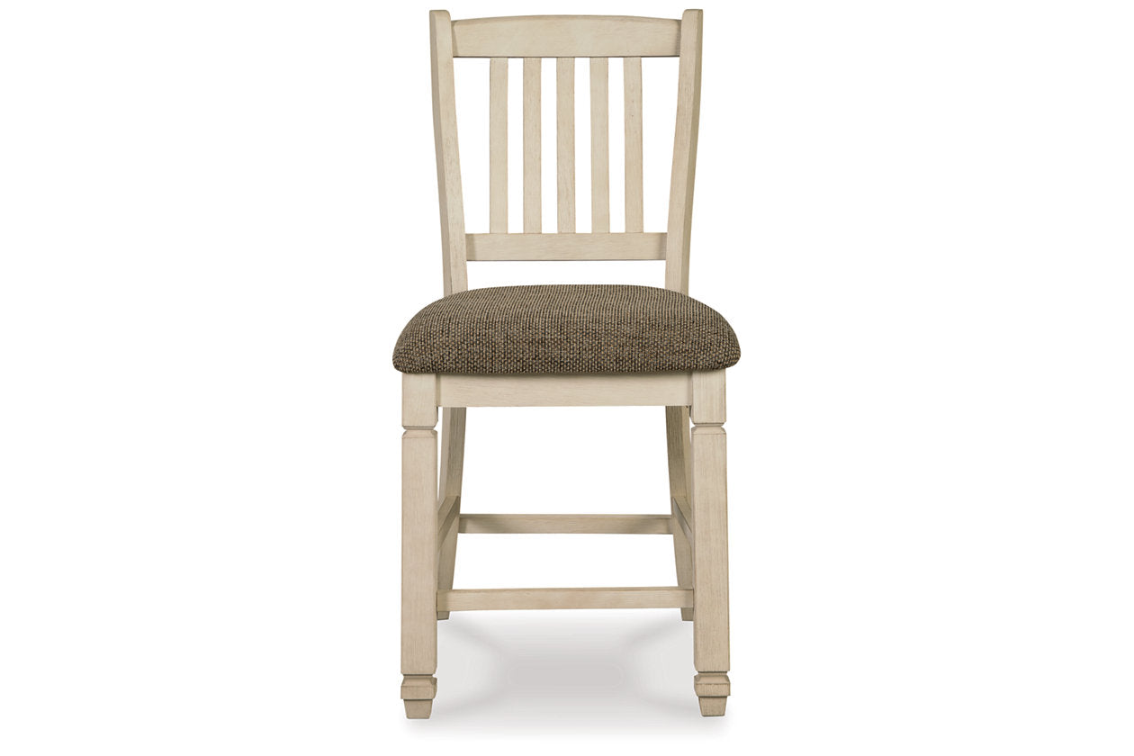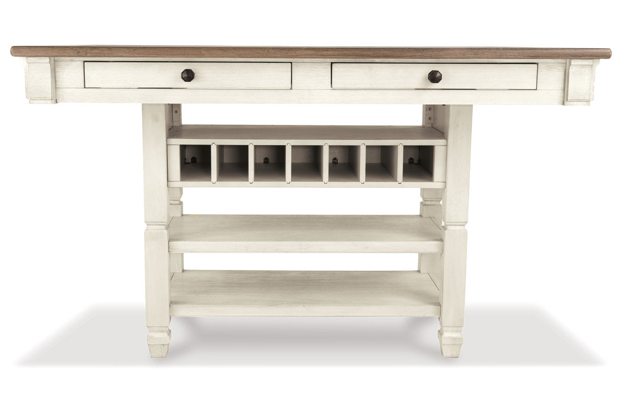 Bolanburg Antique White Counter Height Table with 6 Barstools, Server and Display Cabinet