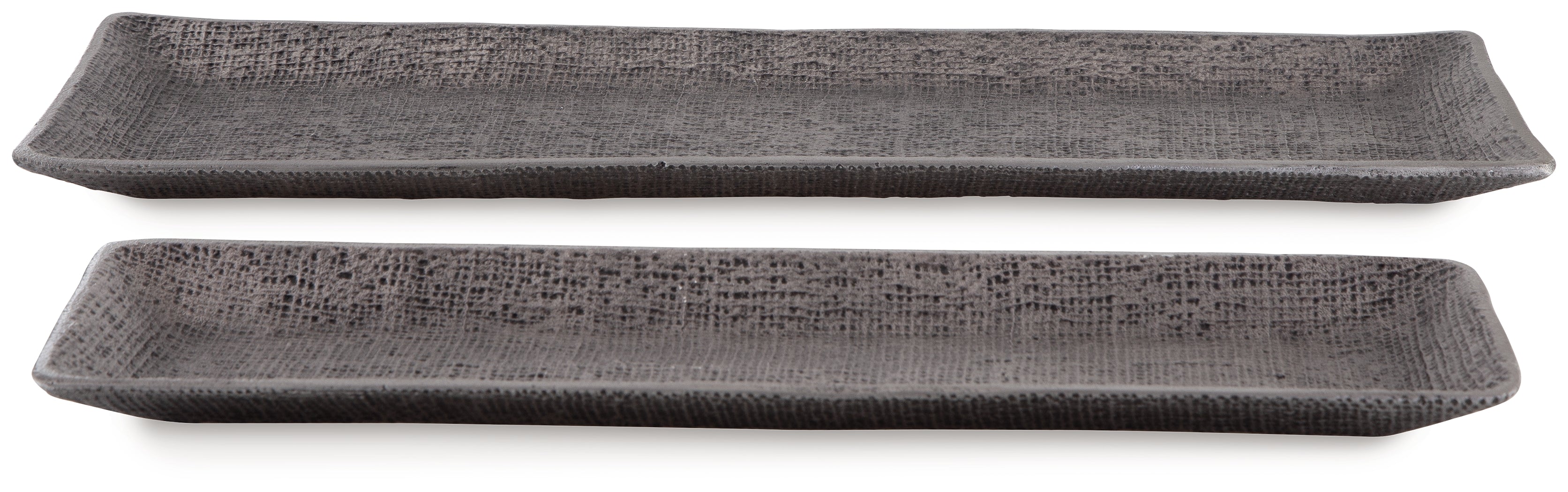 Top off tables and counters with this tray set. Searching for a casually cool catch-all option for your entryway? They keep keys and other essentials corralled. Also acting as a beautiful base for additional decorative pieces thanks to their textured surface, these trays are pioneers in fashionable function. — Luna Furniture introduces Garekton Tray (Set of 2) to enhance the beauty of your living spaces.