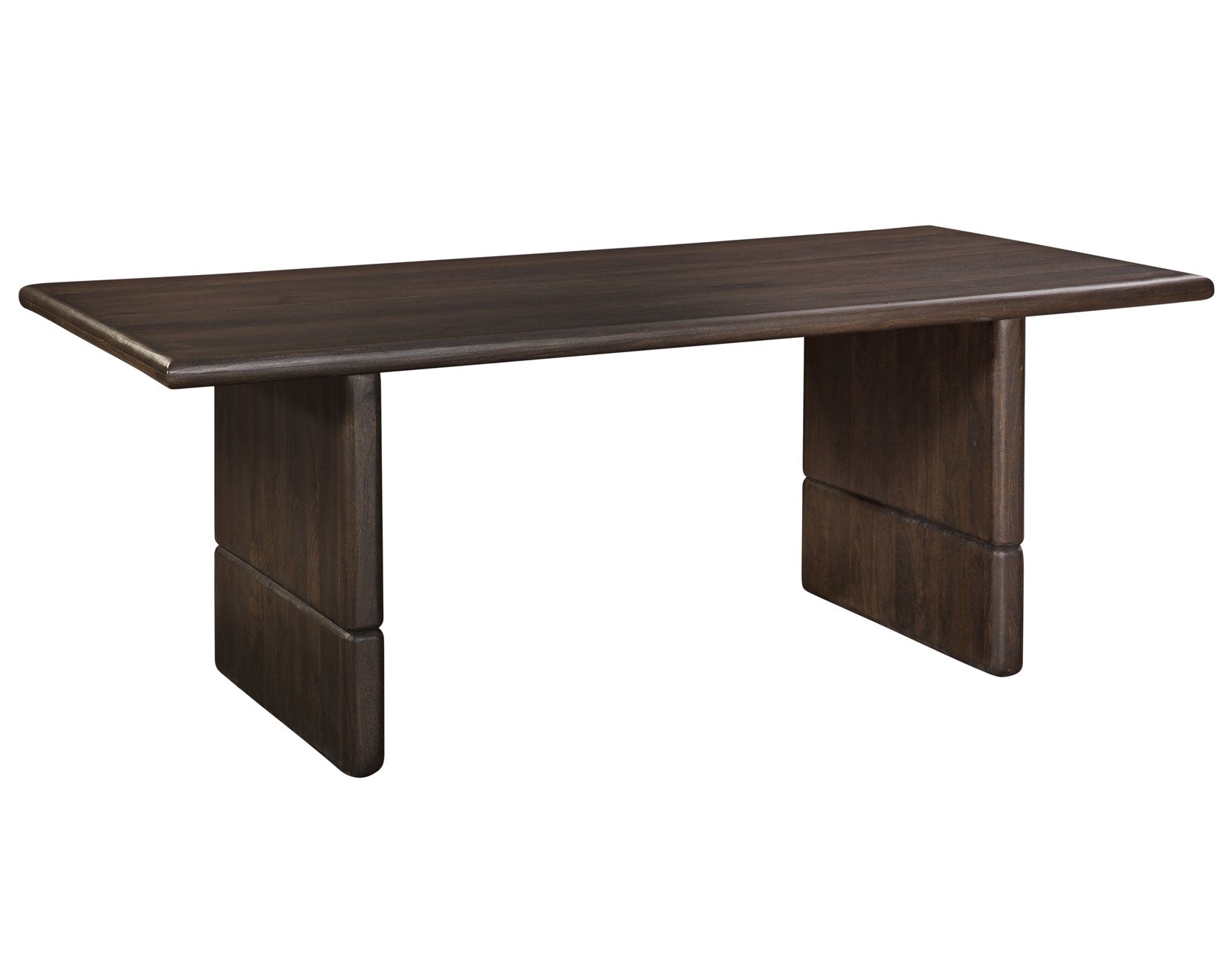 The Norvell Solid Wood 78″ Table blends clean lines and transitional style with artisan craftsmanship. Finished in a rich dark espresso, the table features refined details like a bullnose edge and a notched double pedestal base—echoed in the matching bench for a coordinated look. At 78″ long, it’s perfectly sized to seat up to six comfortably without overwhelming the space, making it an ideal choice for both everyday dining and special occasions.
