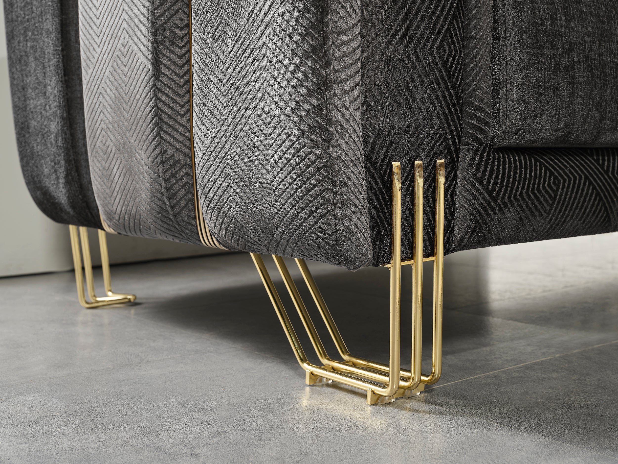 • Leg Style: Metallic gold, geometric profile