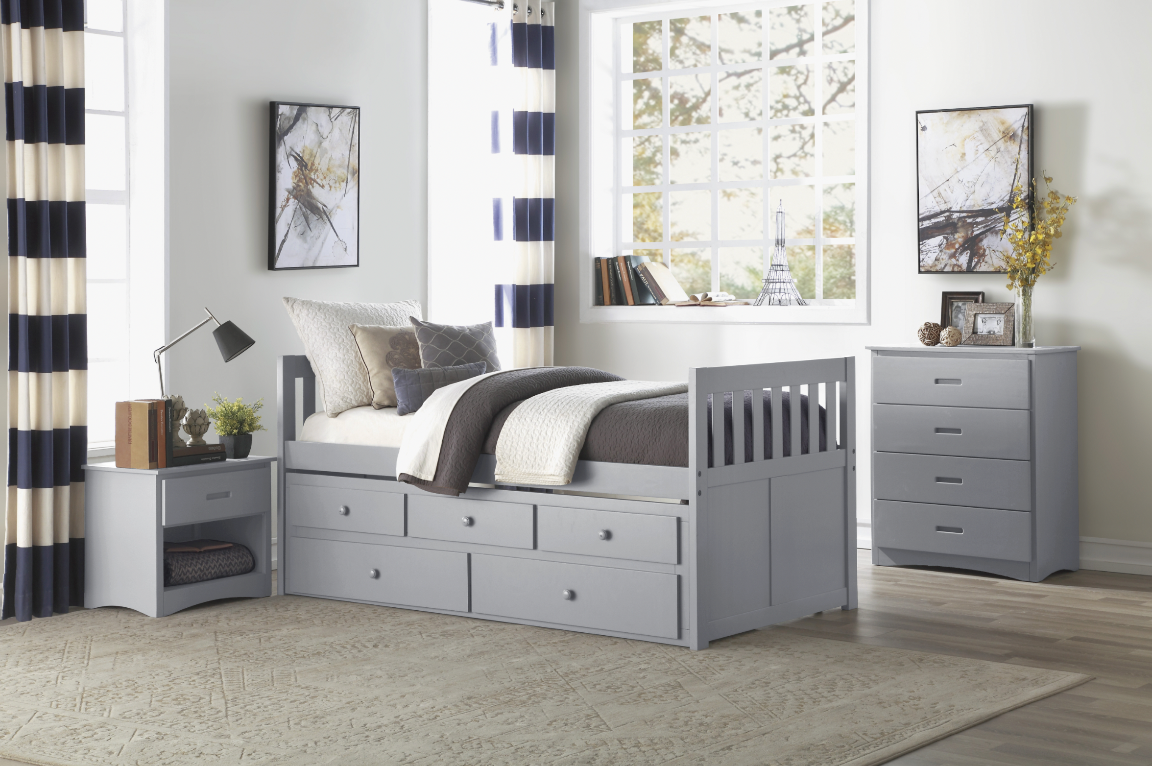 Orion Gray Twin Captains Trundle Bed
