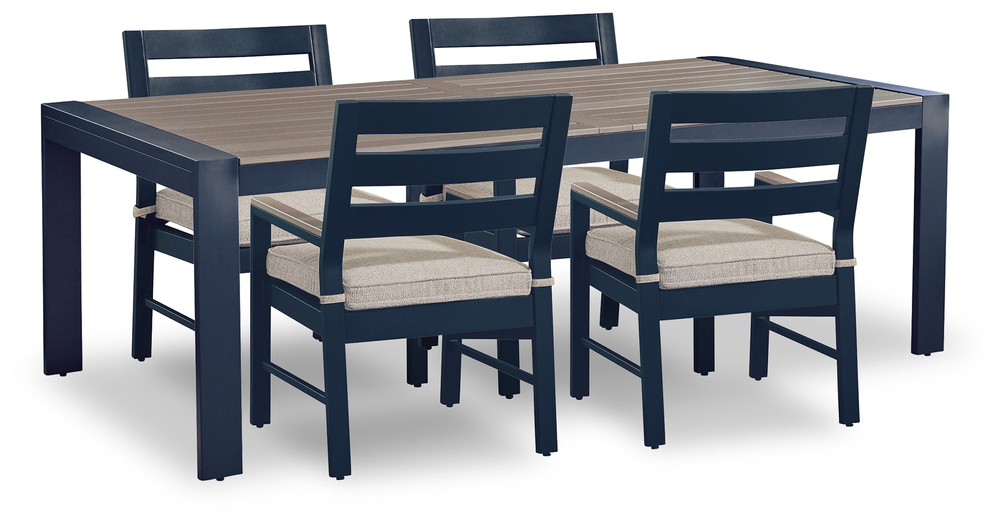 East Beach Outdoor Dining Table and 4 Chairs in Navy Blue/Driftwood