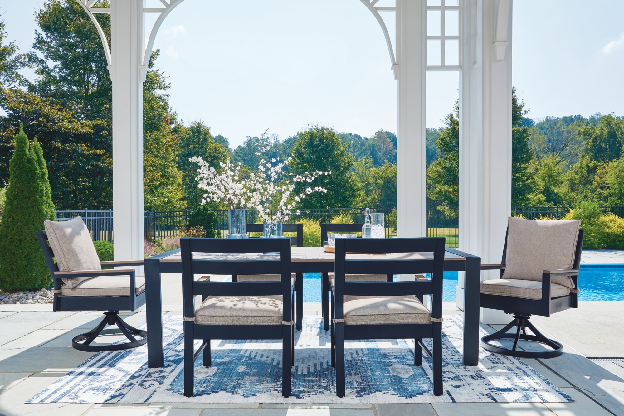 East Beach Outdoor Dining Table and 6 Chairs in Navy Blue/Driftwood