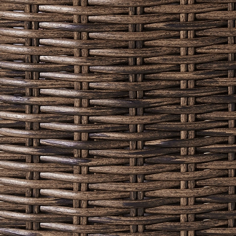 • Collection has hand woven resin wicker with rust free aluminum frames with a brown wood-look finish. All cushions and throw pillows are made with Nuvella high performance fabric. Choose from dining, bar table and seating sets. For dining, choose from stationary dining chair or swivel rocker dining chair. 56" square bar table includes 55,000 BTU CSA approved stainless steel burner, enclosed storage area with shelves. Stools have fast dry foam seats below the woven resin wicker to provide comfort. No seat pads needed for barstools. To order a 9-piece bar table set, order P750-130(4) and P750- 665. Assembly required for all skus.
