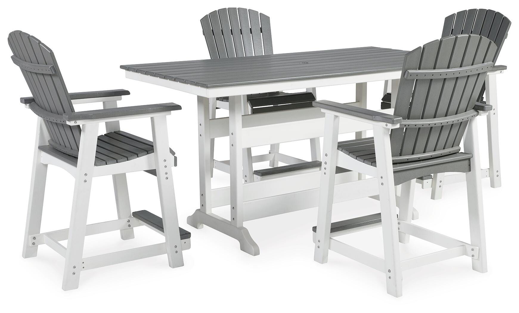 Transville Gray/White Outdoor Counter Height Dining Table with 4 Barstools