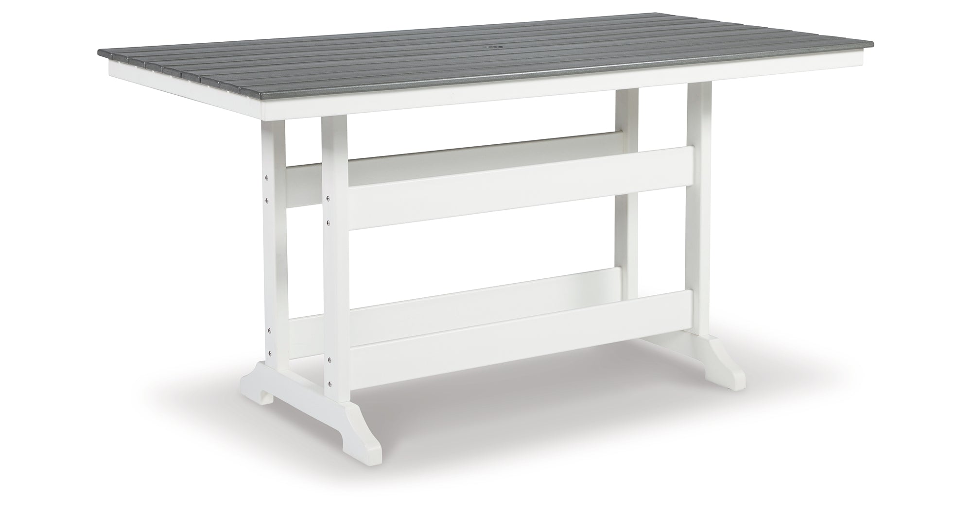 Raise the bar on outdoor living with this dining table and bar stool set. Crafted for style, comfort and MEGA TUFF™ durability, the counter height set caters with a standout two-tone look that pairs gorgeous gray and crisp white for twice the interest. Luna Furniture introduces Transville Outdoor Counter Height Dining Table with 4 Barstools to enhance the beauty of your living spaces.