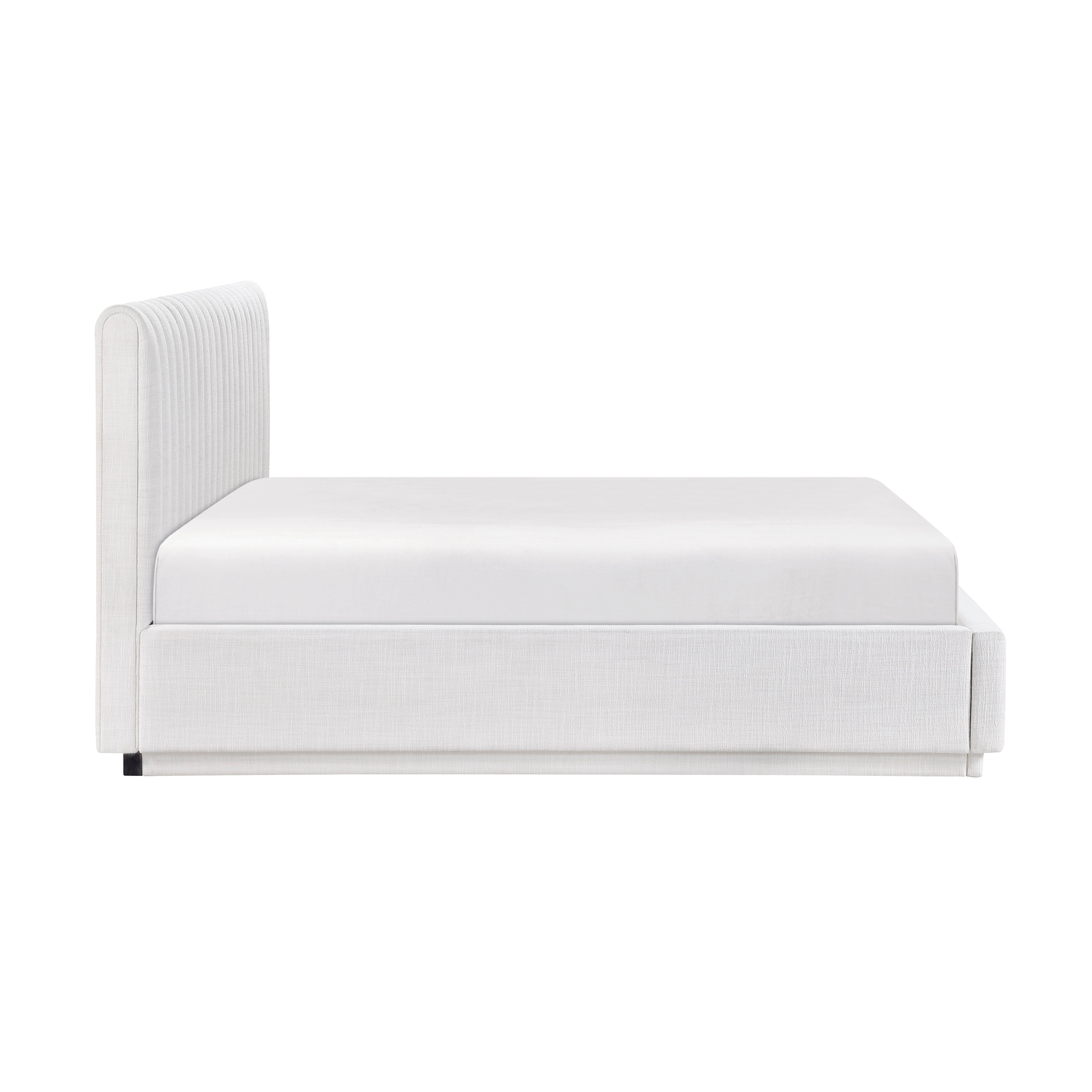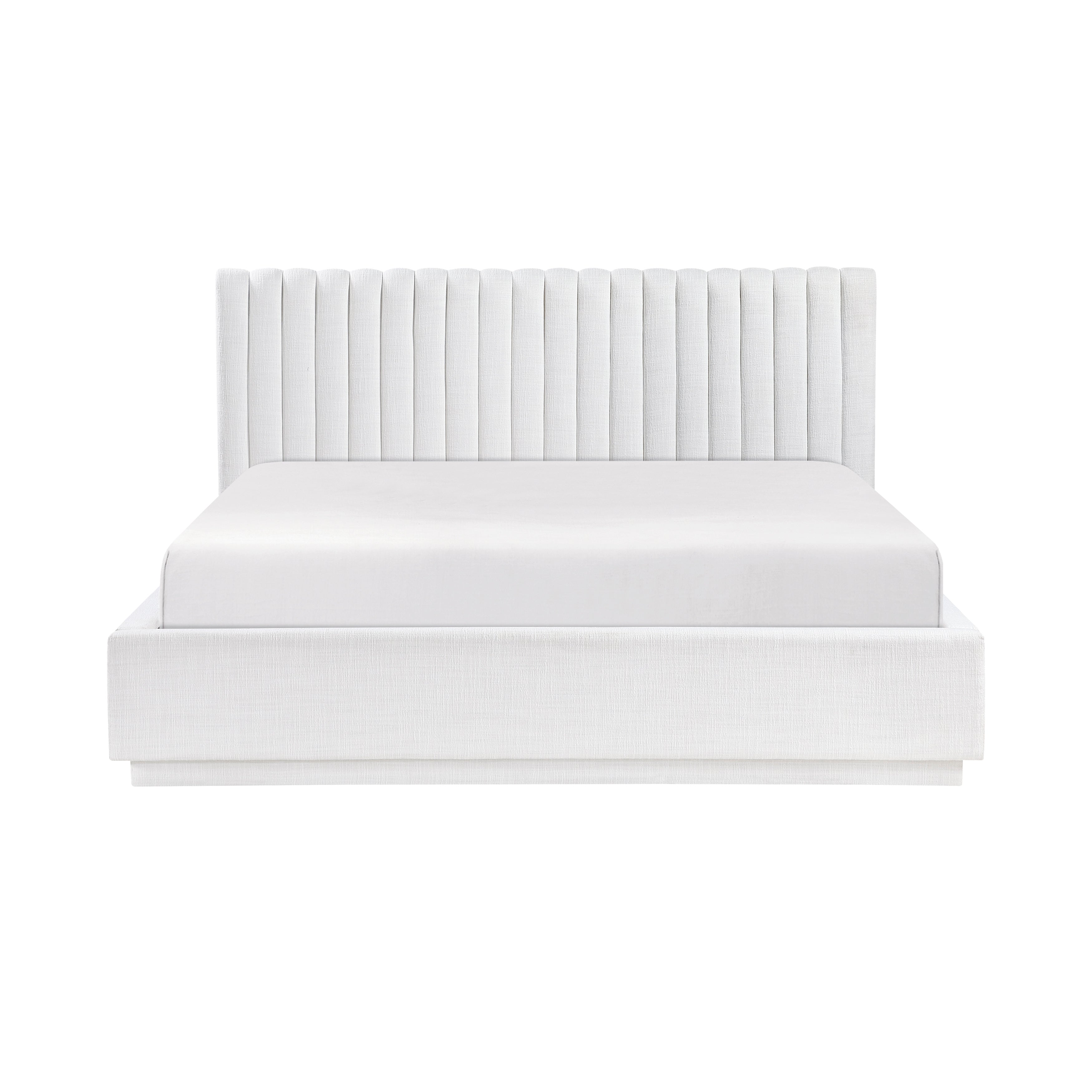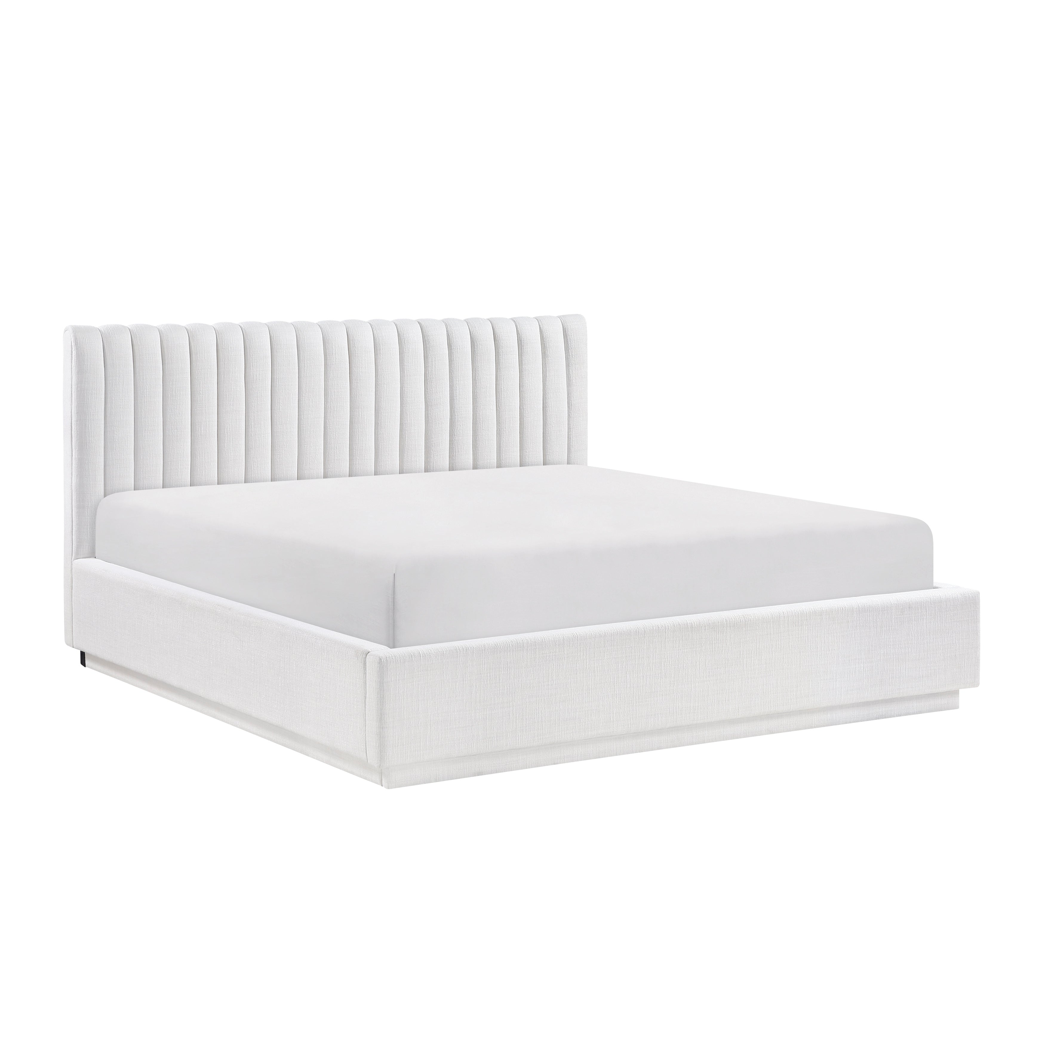 Create a luxurious and modern focal point in your bedroom with this Eastern King Size, natural channel-tufted platform bed. Featuring a sturdy plywood frame and soft textured fabric upholstery with elegant channel tufting on the headboard, this bed offers both durability and sophisticated style. The complete set includes a channel-tufted headboard, footboard, slats, and rails, providing everything you need for a supportive and comfortable sleep experience. Designed to eliminate the need for a foundation or box spring, this platform bed offers a sleek, low-profile look that complements various décor styles. Assembly is required.