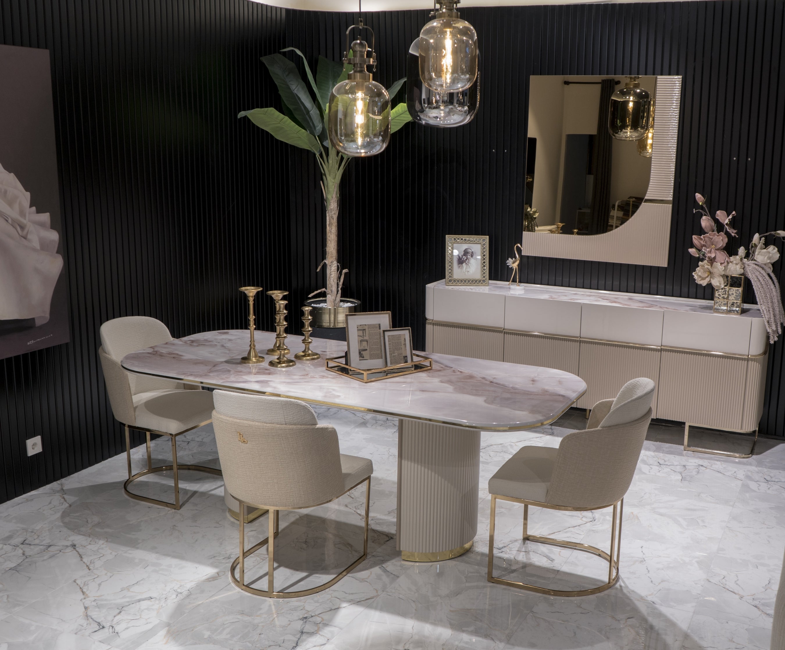 The Orsino Sideboard is a statement piece designed to bring sophistication and functionality into your dining or living space. With its sleek lines, luxurious materials, and timeless aesthetic, this sideboard offers ample storage while elevating your interior décor. Its high-gloss finish, complemented by textured details and gold-tone accents, creates a refined and elegant atmosphere, making it an exquisite addition to modern homes.