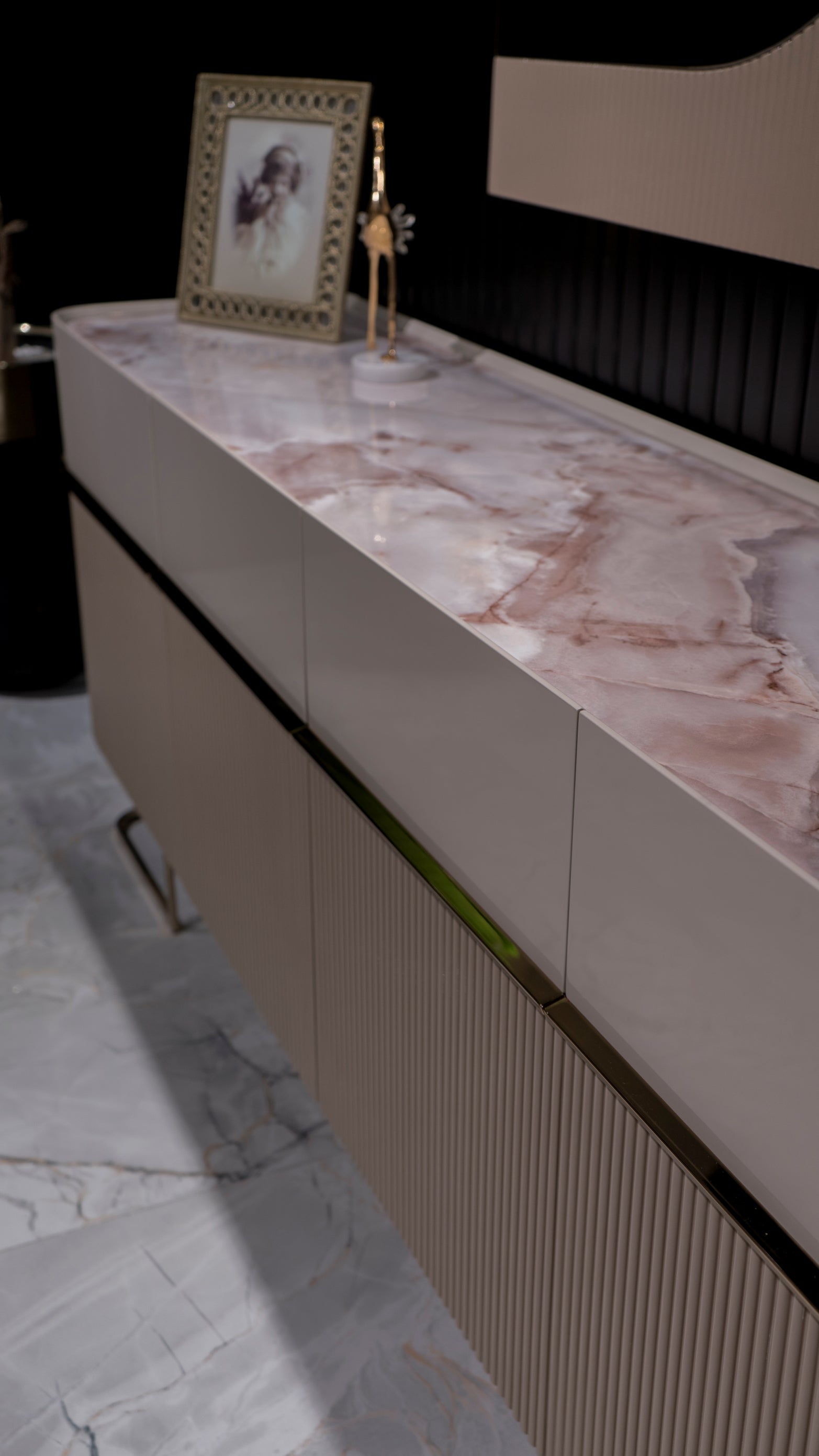 Luxury Marble-Effect Top – A polished faux-marble surface enhances the sideboard’s visual appeal while providing a durable, easy-to-clean surface.