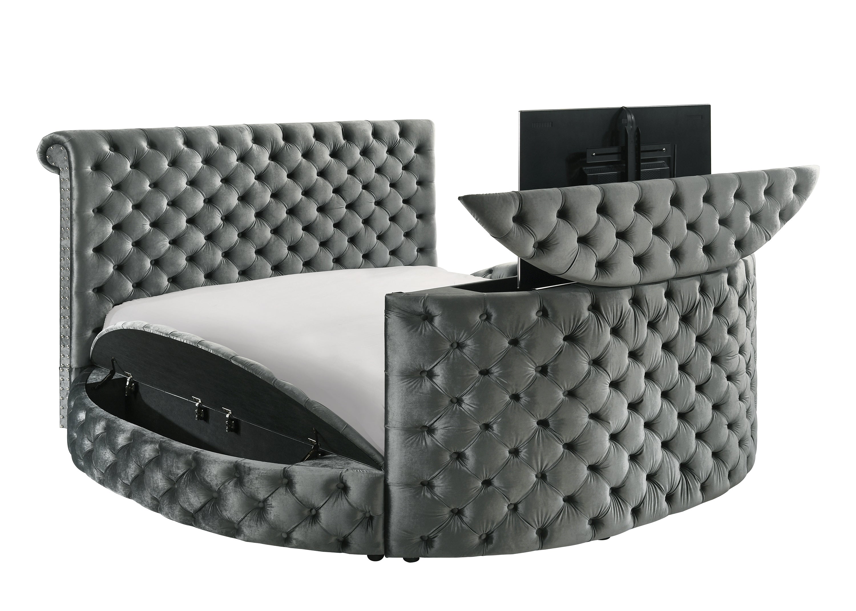Voltare Gray Queen Upholstered Fireplace Bed with TV Lift | 5212GY