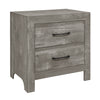 Modern lines and rustic styling are paired to create the look of the Corbin Collection. The 3D printed paper veneer’s texture is highlighted by a gray finish for a realistic wood look. Providing complementing contrast, the drawer fronts of the nightstand feature black metal hardware. Subtle framing defines the profile of the dresser, further lending to the unfettered design of the collection.