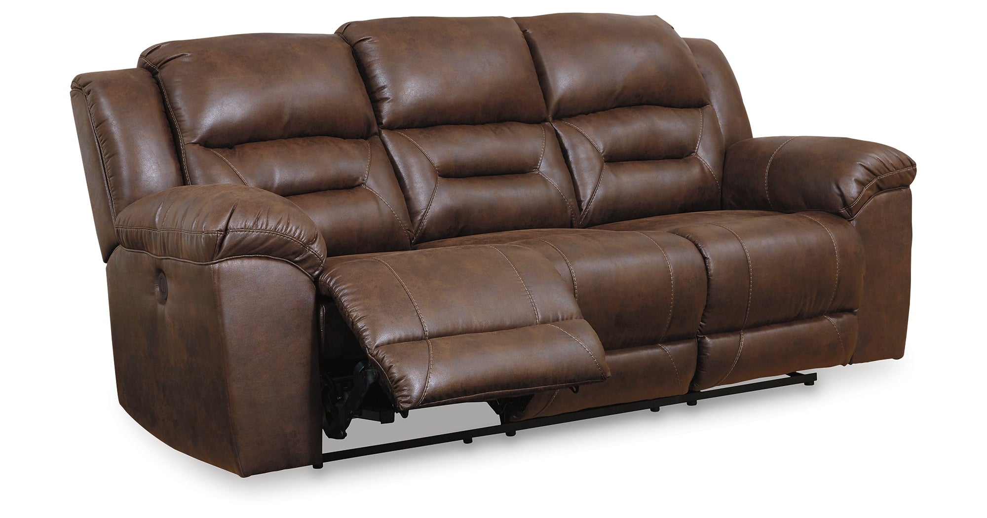 For those who love the cool look of leather but long for the warm feel of fabric, this power reclining sofa delivers both with ease. Its high-performance padded faux leather is remarkably durable and easy to clean, making it just the thing for family spaces. When it’s time to relax, the one-touch power control puts the perfect position at your fingertips. Channel-stitched back cushions provide indulgent lumbar support for maximum seating comfort—not to mention fashion-forward flair. — Luna Furniture introduces Stoneland Power Reclining Sofa to enhance the beauty of your living spaces.