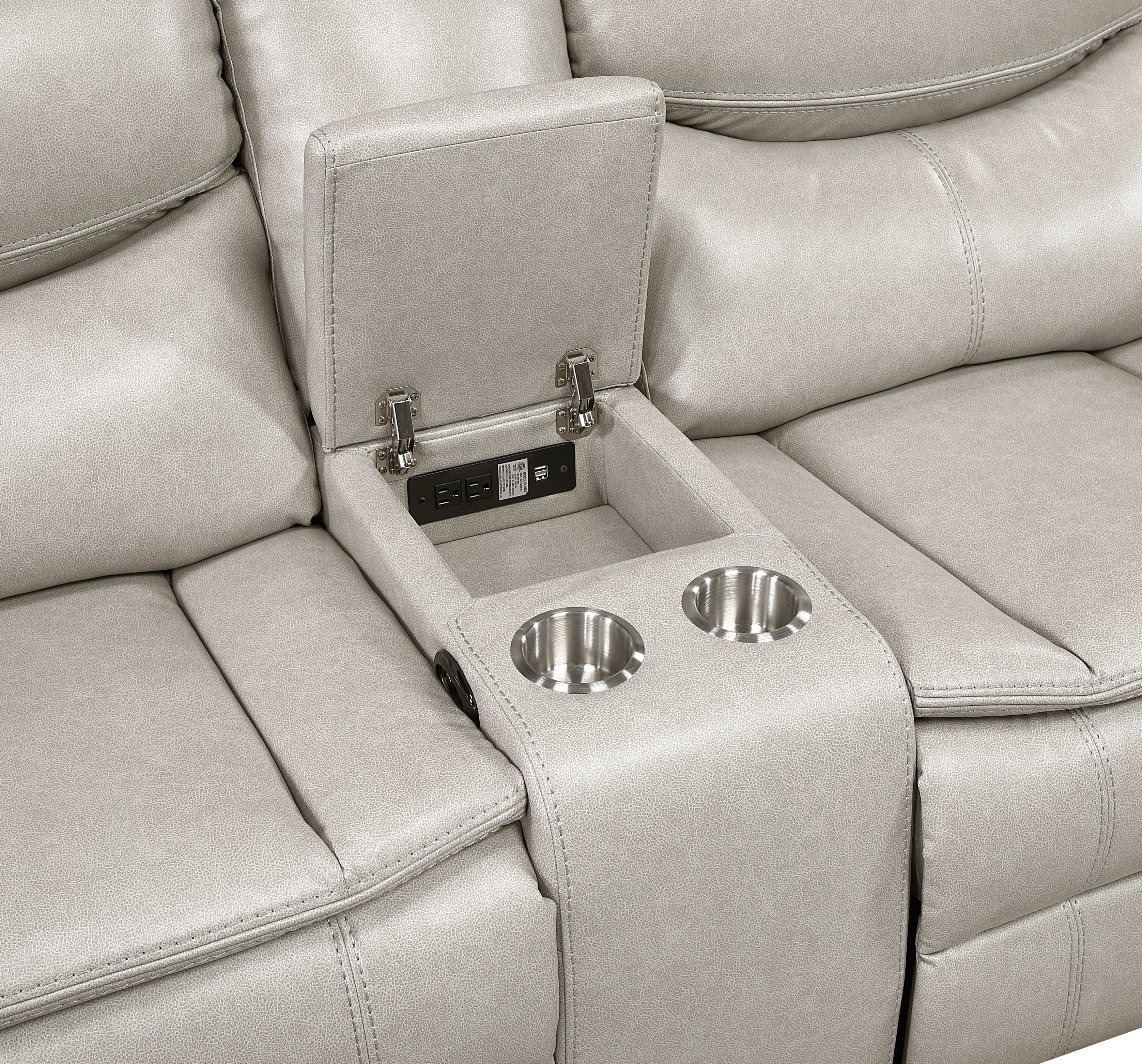 Sink into unparalleled comfort and modern convenience with the 3-Piece power reclining sectional. Crafted for relaxation and designed to impress, this luxurious sectional features supple, breathable faux leather upholstery that invites you to unwind. The robust solid wood and plywood frame, enhanced with a metal-reinforced seat, ensures lasting stability and support for years to come. Experience personalized comfort with the one-touch power control, allowing you to effortlessly find your perfect reclining position. The thoughtfully designed console, complete with two cup holders, power receptacles, and USB ports, keeps your beverages and devices within easy reach. With three integrated recliners, this sectional is the ultimate centerpiece for any living space, offering both exceptional comfort and practical functionality for the whole family.