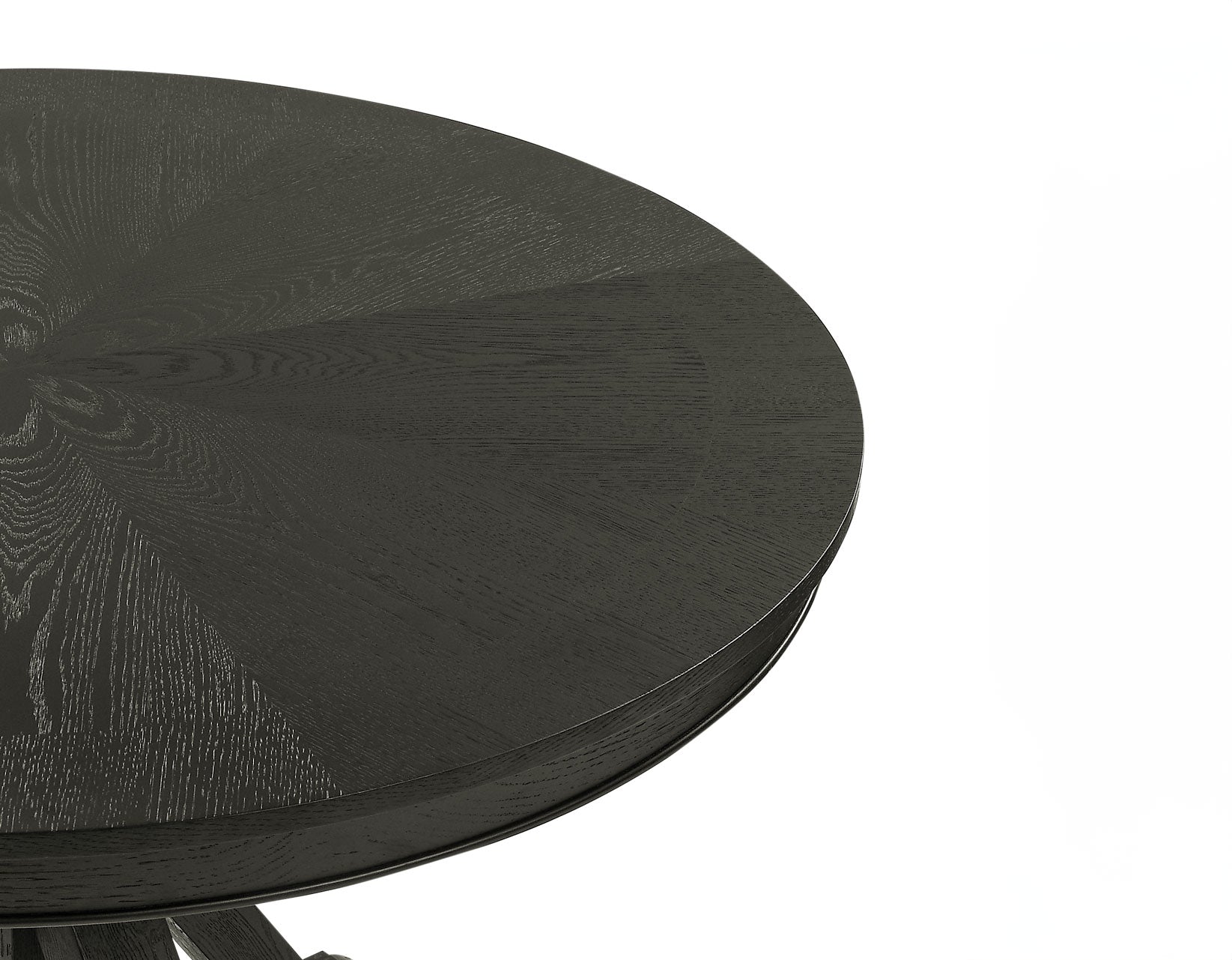 The Rylie 48-inch Round Trestle Table brings rustic design into the future in a cozy and intimate package that will dress up any room. With a black finish over oak veneers, this table freshens up a classic design. A masterpiece of craftsmanship and style, this table showcases a stunning pinwheel oak veneer designed top that beautifully displays the wood’s character and grain. The rustic, timber beam trestle base provides a solid foundation, ensuring stability and durability. Designed to seat up to four people comfortably, it’s the perfect setting for intimate dinners and meaningful conversations. Plus, with plastic glides to protect your floors and no assembly required, it’s ready to enhance your space with its cozy, inviting charm.