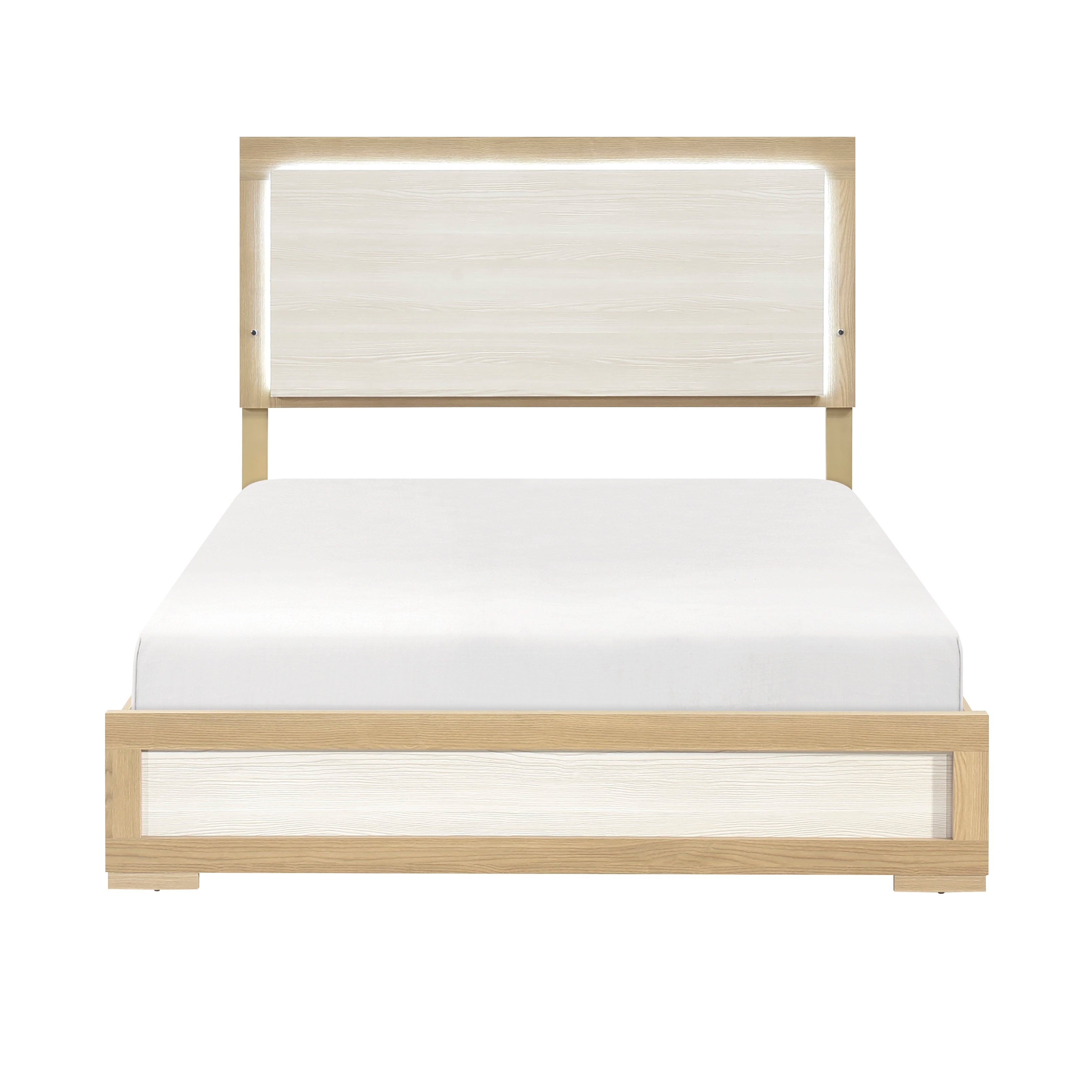Bring a touch of fresh, modern style to your bedroom with the full bed frame. Featuring a striking two-tone finish in natural wood and crisp white, this bed frame creates a bright and inviting focal point. Crafted from a durable combination of 3D paper, premium melamine board, wood, and engineered wood, it offers a sturdy and reliable foundation for your mattress. The melamine laminate not only enhances the aesthetic but also provides excellent resistance to scratches and stains, ensuring lasting beauty. This set includes the headboard, footboard, and side rails, ready to be paired with your preferred full-sized foundation and mattress for a complete and stylish sleep setup.