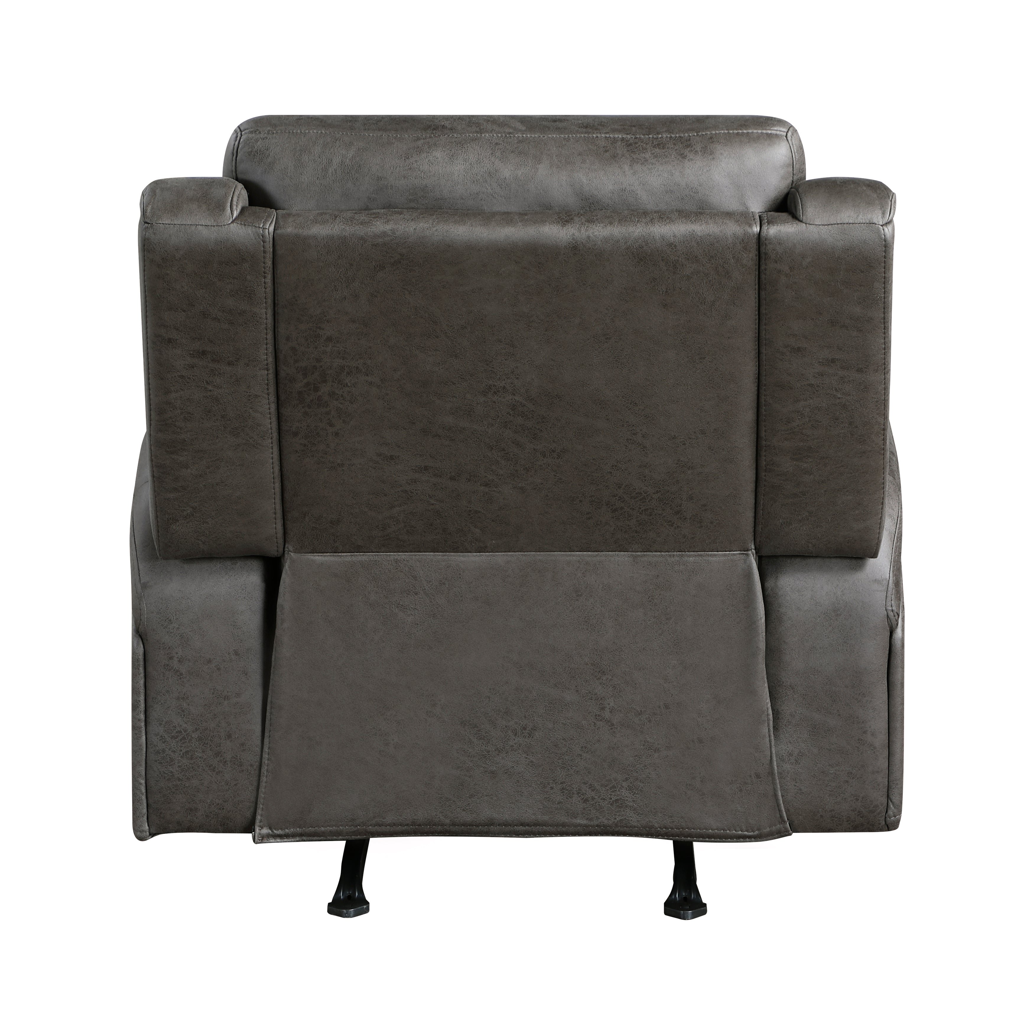 Transitional style is exemplified in the Pagosa Collection, its design pairing plush contoured seating, and versatility of style to create a relaxing space within your home’s living room. The plush contoured profile of the collection is covered in gray polished microfiber. With a pull of the side mounted tab the reclining mechanism is engaged easing the chair, and dual end recliners of the sofa and loveseat, into the prone position. The chair features additional function by way of its rocking mechanism.
