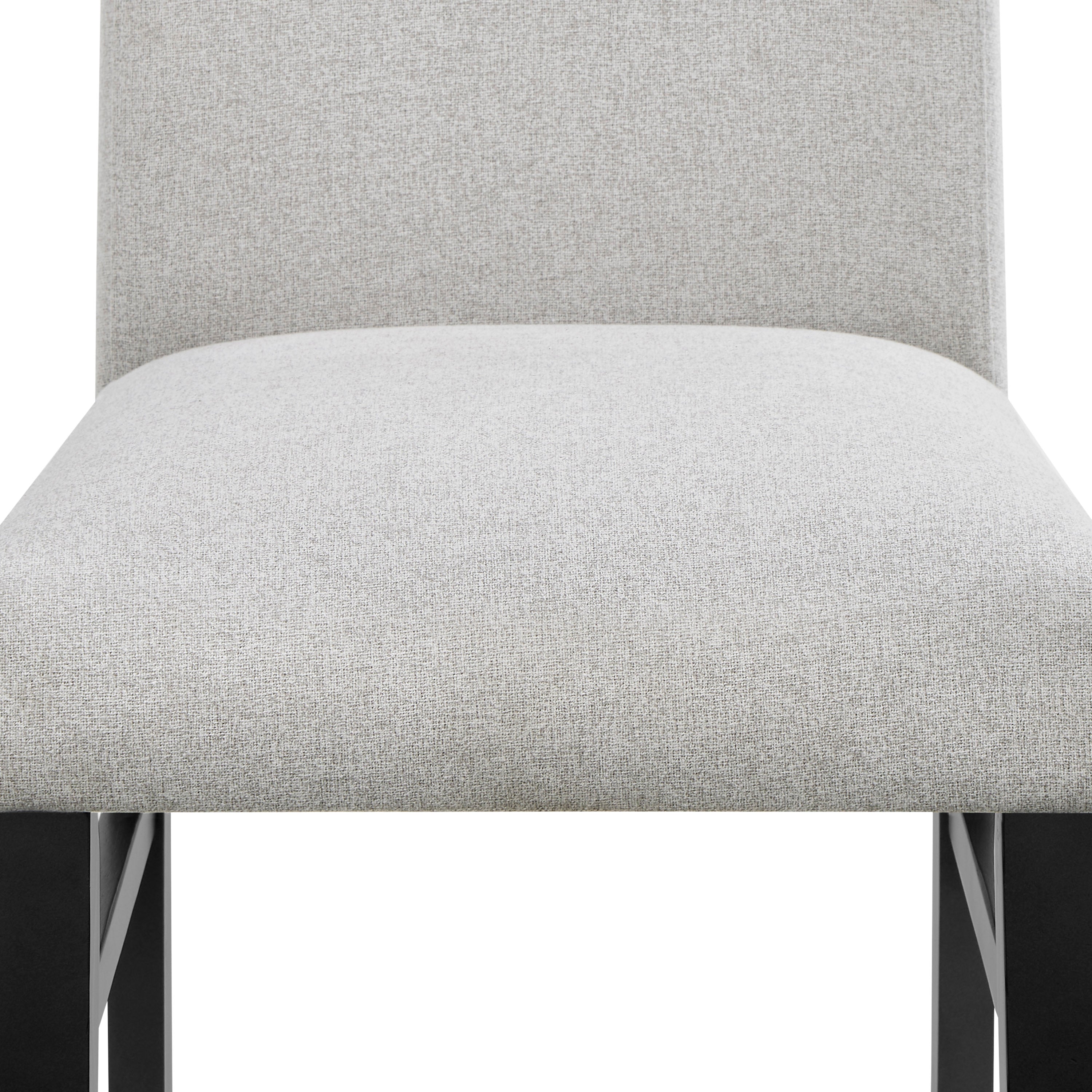 • Comfortable Upholstered Seating: Each chair is generously padded and upholstered in a refined, neutral dove-gray fabric, offering both style and long-lasting comfort.