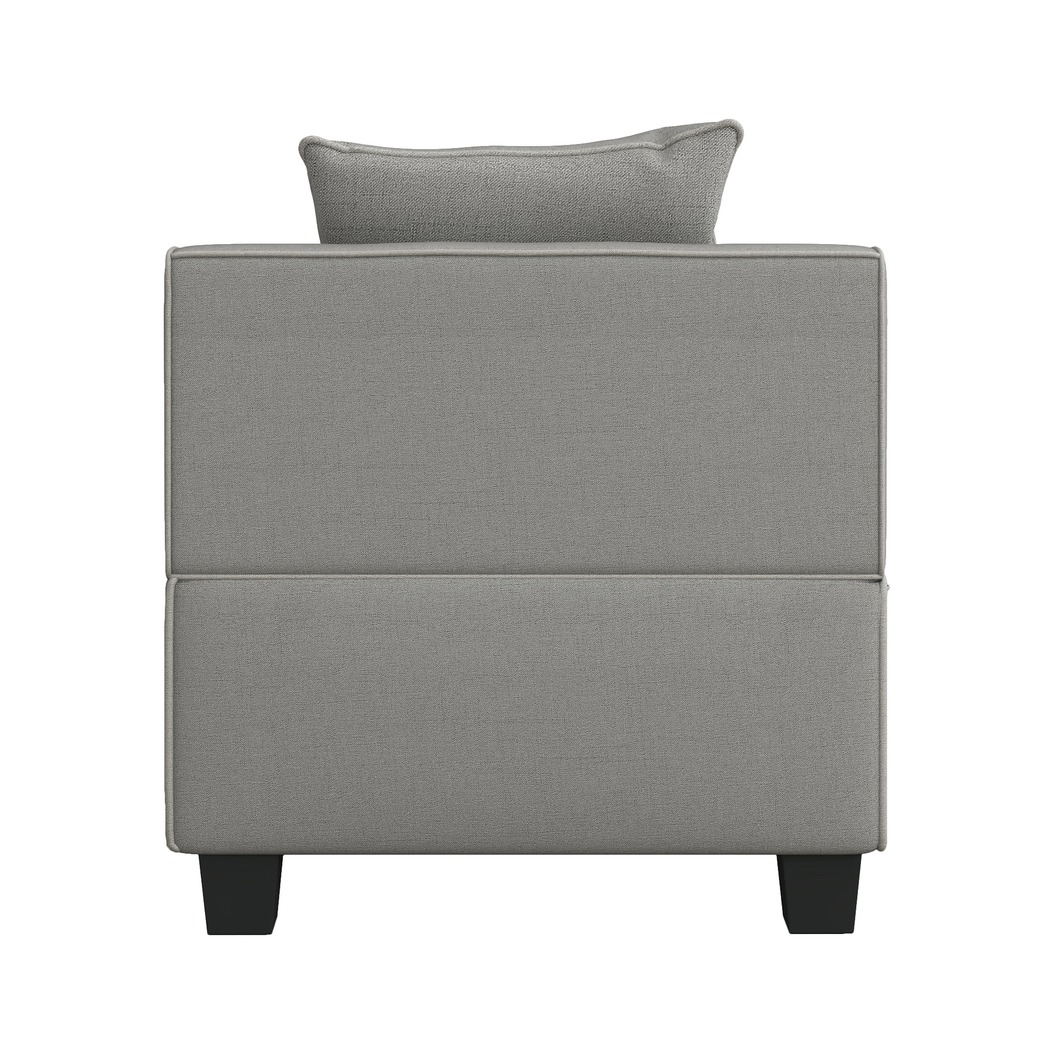 The modular design of the Jayne Collection provides a versatile seating experience configurable to your modern living room’s available space. Pair two armless chairs with two coordinating corner units to create plush sectional seating. The gray textured fabric of seating group features profile-defining contrast welt and chenille multi-toned geometric print toss pillows that provide complementing accent to the neutral tone of the collection’s cover.