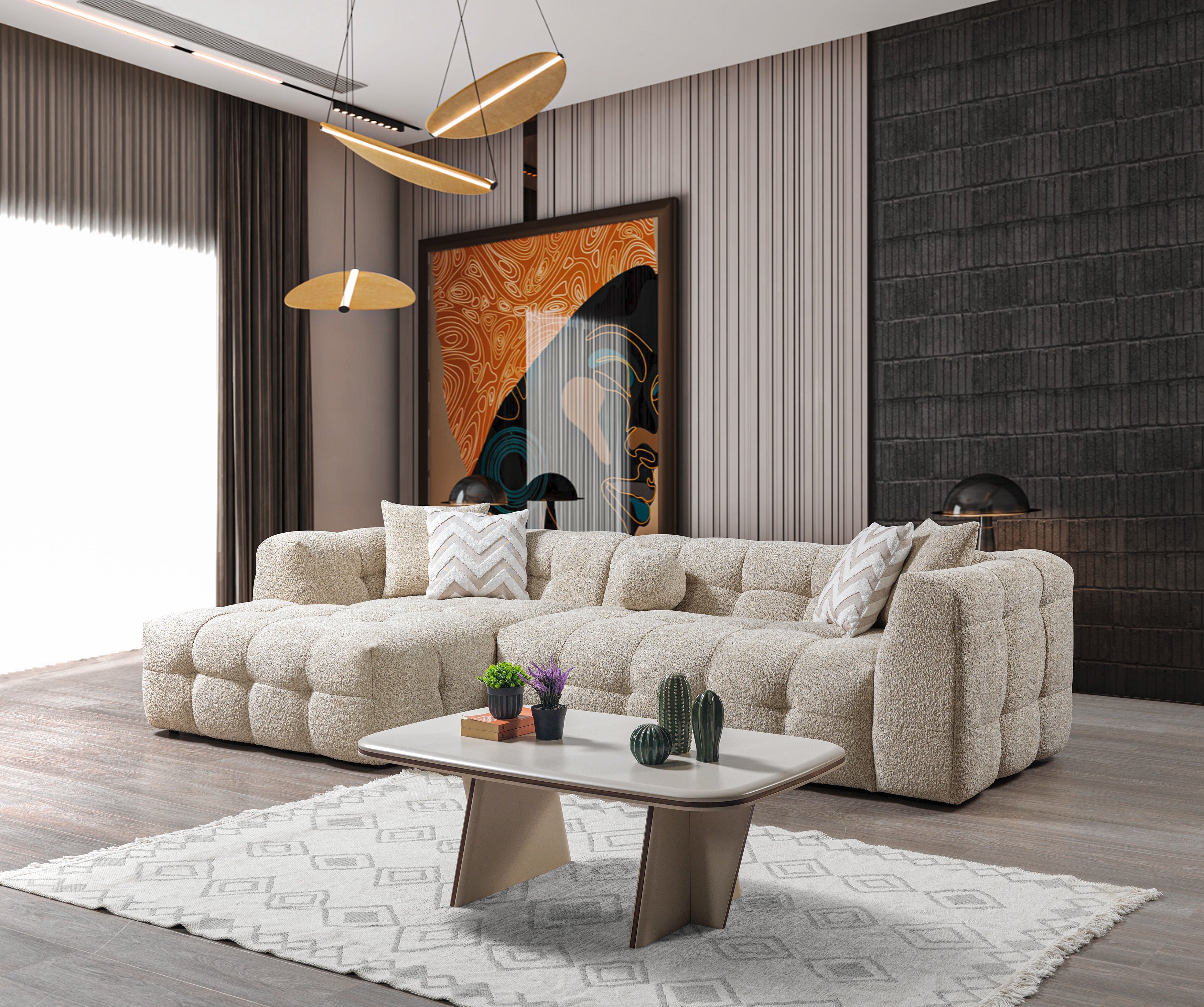 Luxurious and modern, our tufted Ivy Sectional combines cloud-like softness with contemporary elegance. The plush texture and geometric design make it a stylish and cozy centerpiece for any space. Its soft, cloud-like texture and modern design make it a standout centerpiece for any living space.