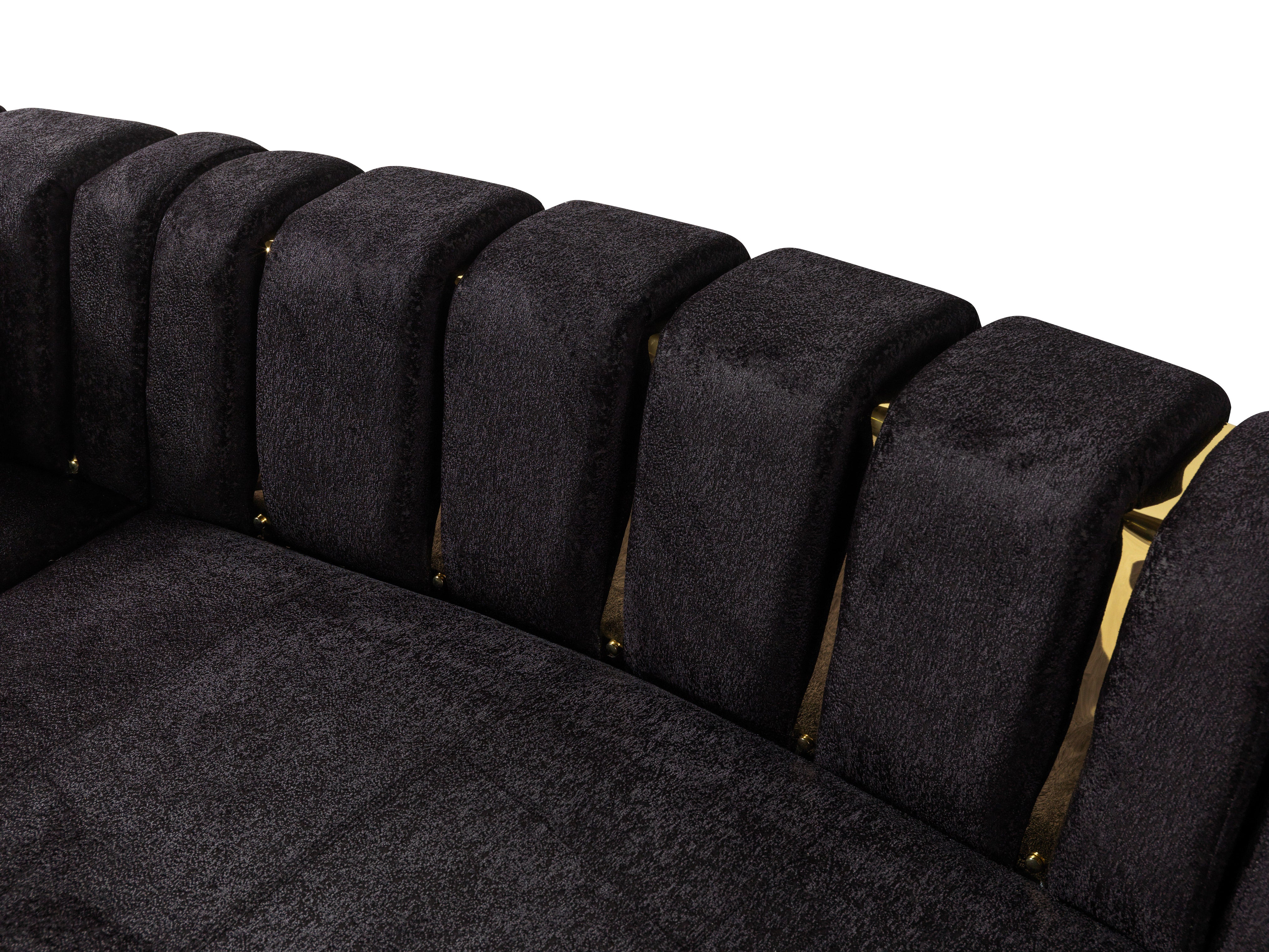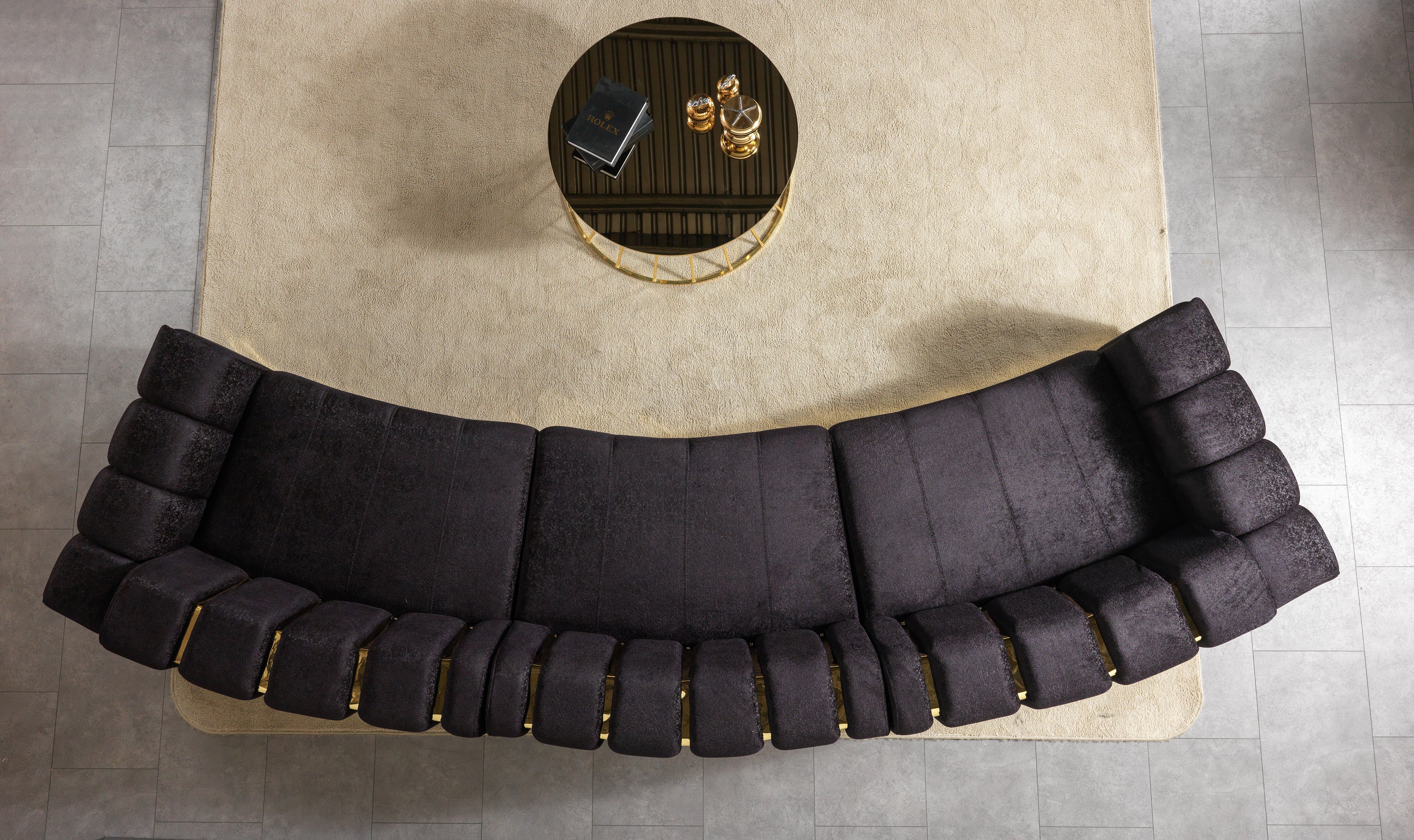 Elevate your living room into a statement of modern luxury and comfort with the Michelle Black Velvet 3-Piece Curved 165" Sectional by Nova Furniture. Designed for those who appreciate bold aesthetics and plush relaxation, this sectional is an invitation to indulge in both opulence and practicality. Imagine hosting elegant gatherings or cozy family evenings on a sofa that commands attention with its dramatic curved silhouette, deep black velvet upholstery, and eye-catching gold metallic base. Whether placed in a penthouse with a cityscape view or a spacious open-plan home, the Michelle sectional becomes the focal point of any environment—offering both a stunning visual presence and an unmatched seating experience. Perfect for contemporary spaces, high-end living rooms, and luxury apartments, this sectional accommodates large groups without compromising on individual comfort. Luna Furniture introduces Michelle Black Velvet 3-Piece Curved 165" Sectional to enhance the beauty of your living spaces. Luna Furniture.