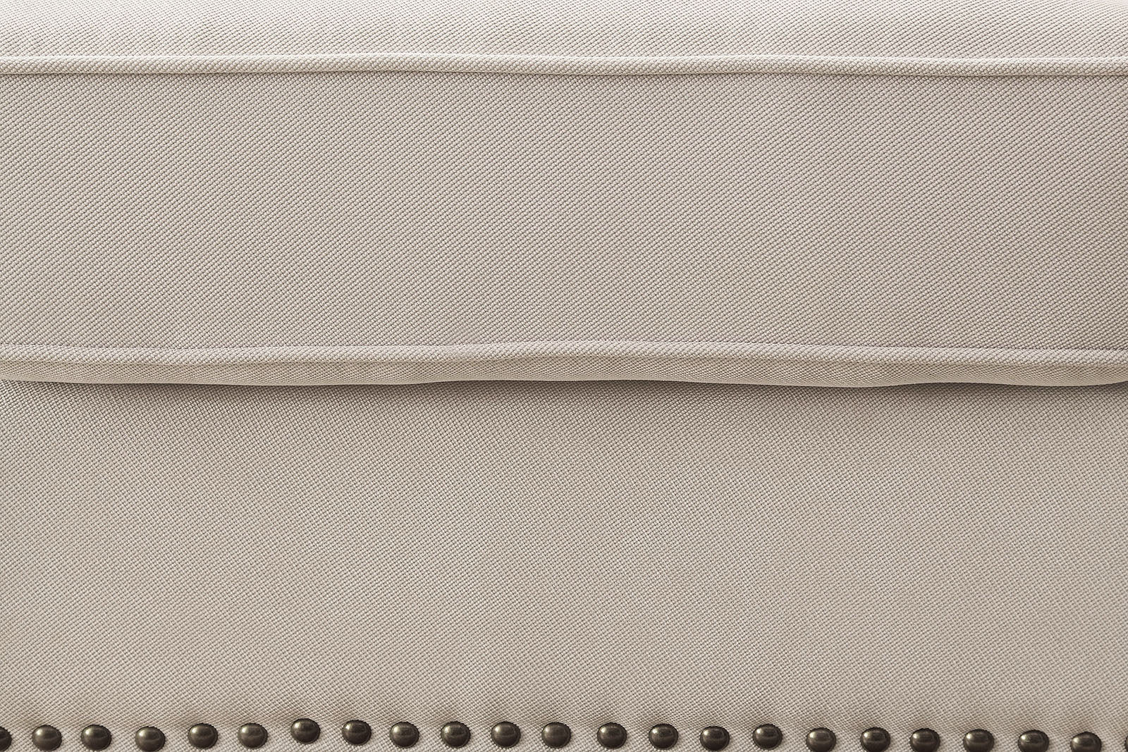 If you’ve always wanted - or have even searched for - a truly unique sectional, look no further! Not only will you add additional comfortable seating wherever you place it, the padded fabric will brighten any room! Wide tapered cube wood feet are darkly finished, supporting this armless wonder that is further enhanced by studded trim accents, as well as a welt cord outline trim. It’s an oddity sure to please.