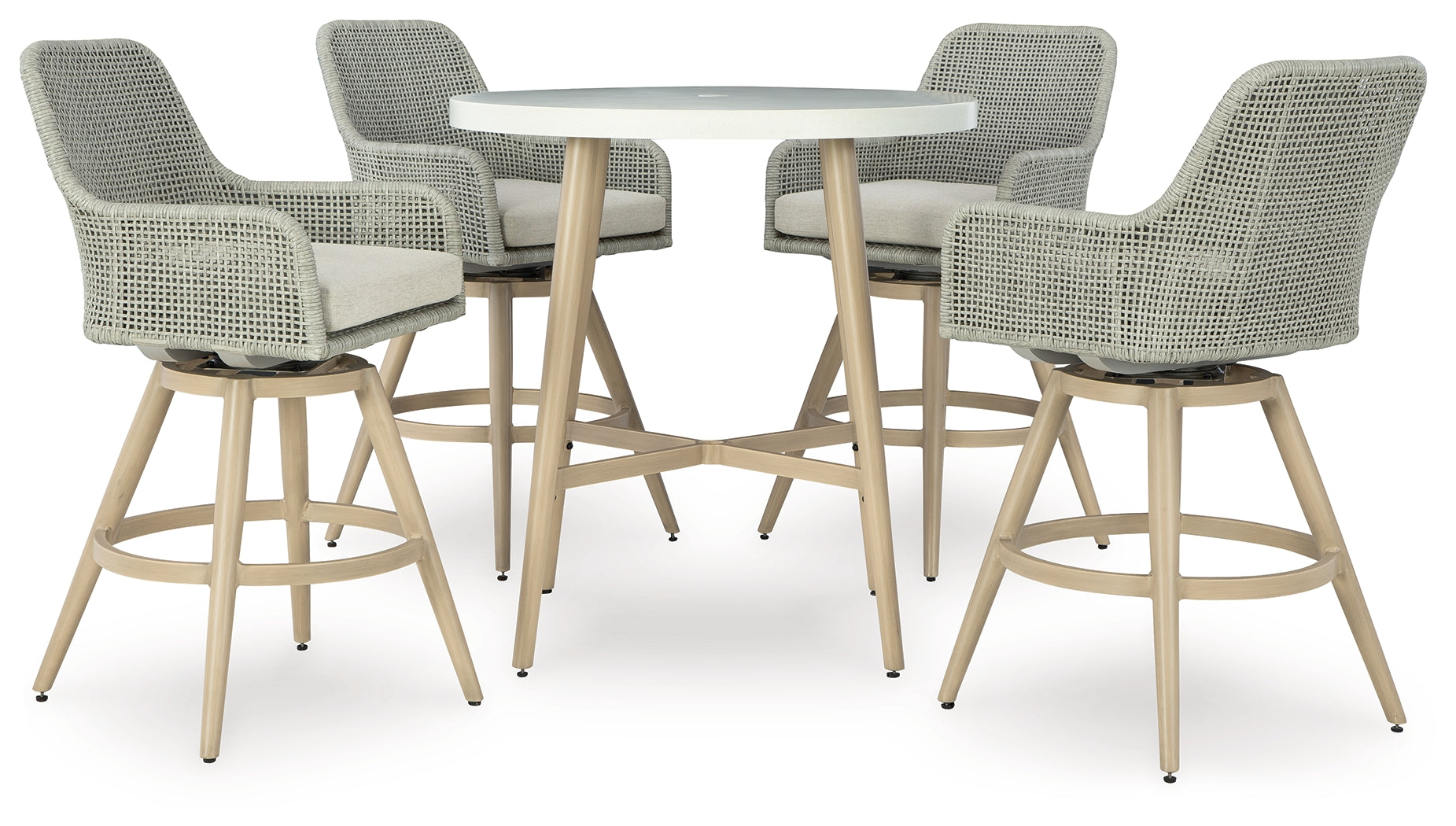 Seton Creek Outdoor Bar Table and 4 Barstools in Beige