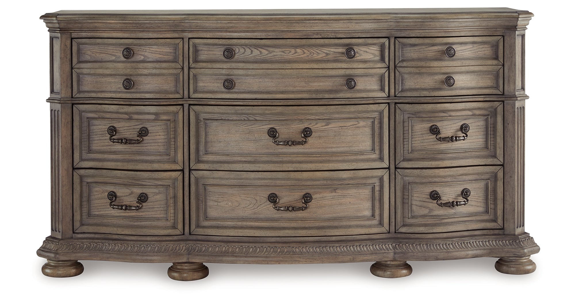 Merging traditional elegance with modern comfort, this bedroom package takes your bedroom retreat to the next level. Serpentine curves, swirling inlay details and a glazed antiqued-look finish radiate timeless sophistication. Settle into its air of stunning refinement and plan to stay a while.