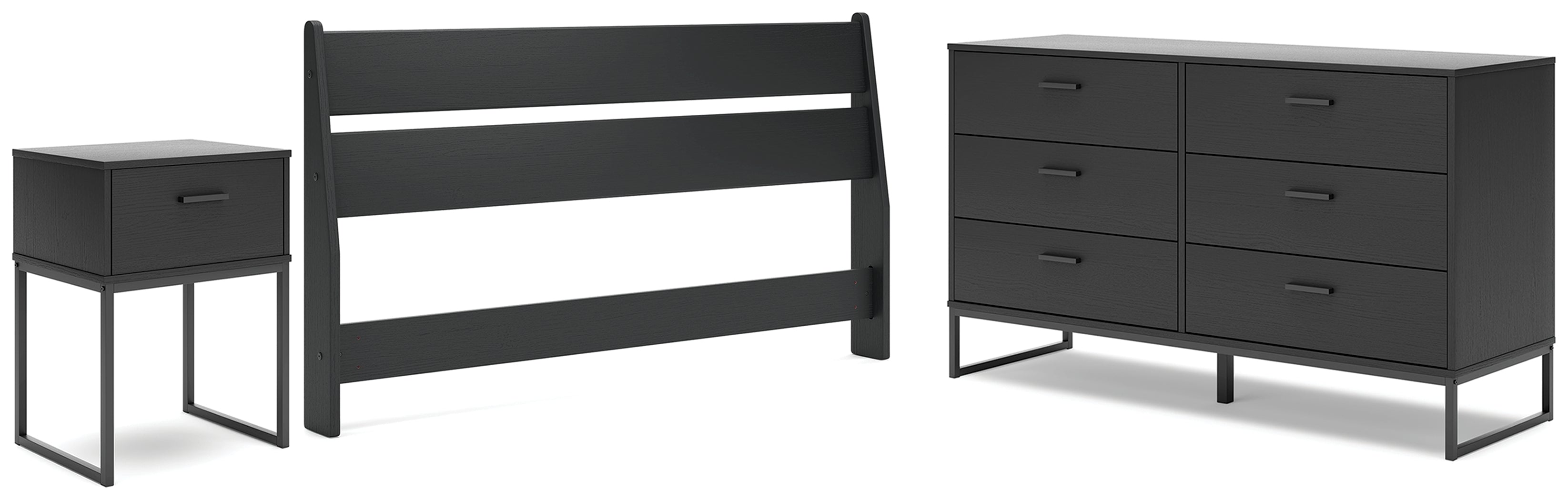 Socalle Queen Panel Headboard with Dresser and Nightstand in Black