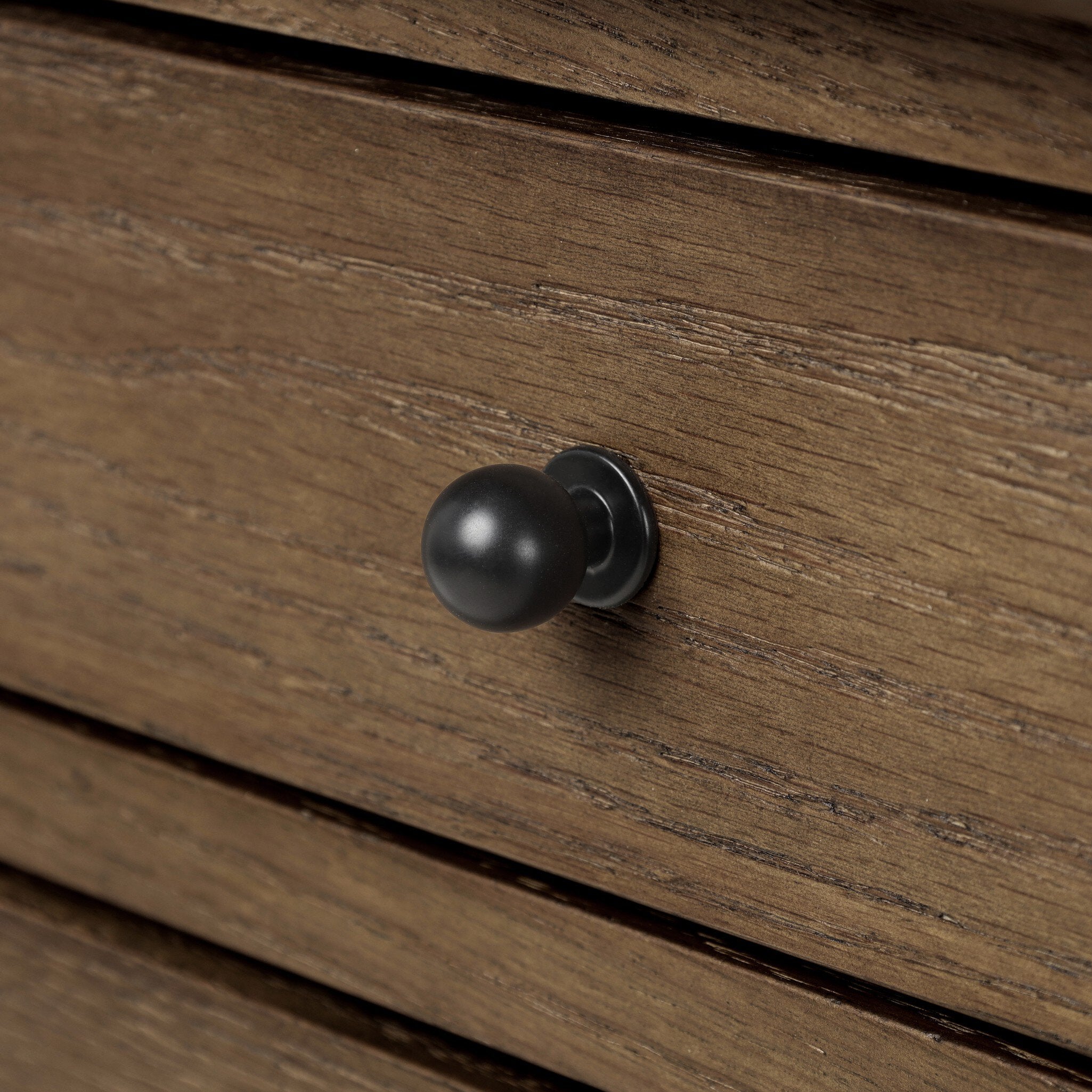 - Crafted from warm oak with iron accents and designed with storage in mind, six drawers and open lower shelf create endless possibilities for organization and display. Exposed joint details on legs and shelving bring an elevated, artisanal feel to any space.