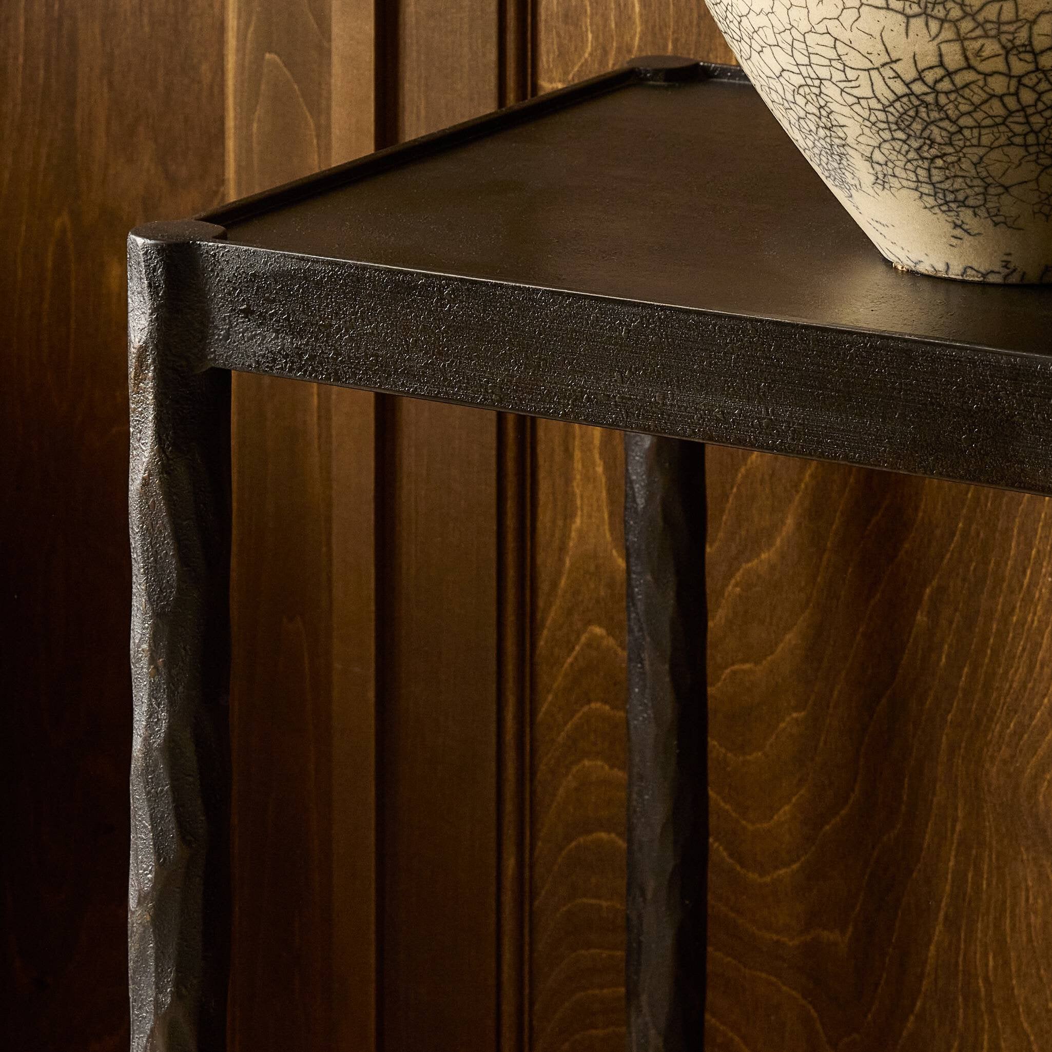 Channel Art Deco with a curved stretcher base of bronzed hammered iron. Style in the entryway, media room or any space that needs extra storage or display. — Luna Furniture introduces Jade Console Table in Textured Bronze to enhance the beauty of your living spaces.